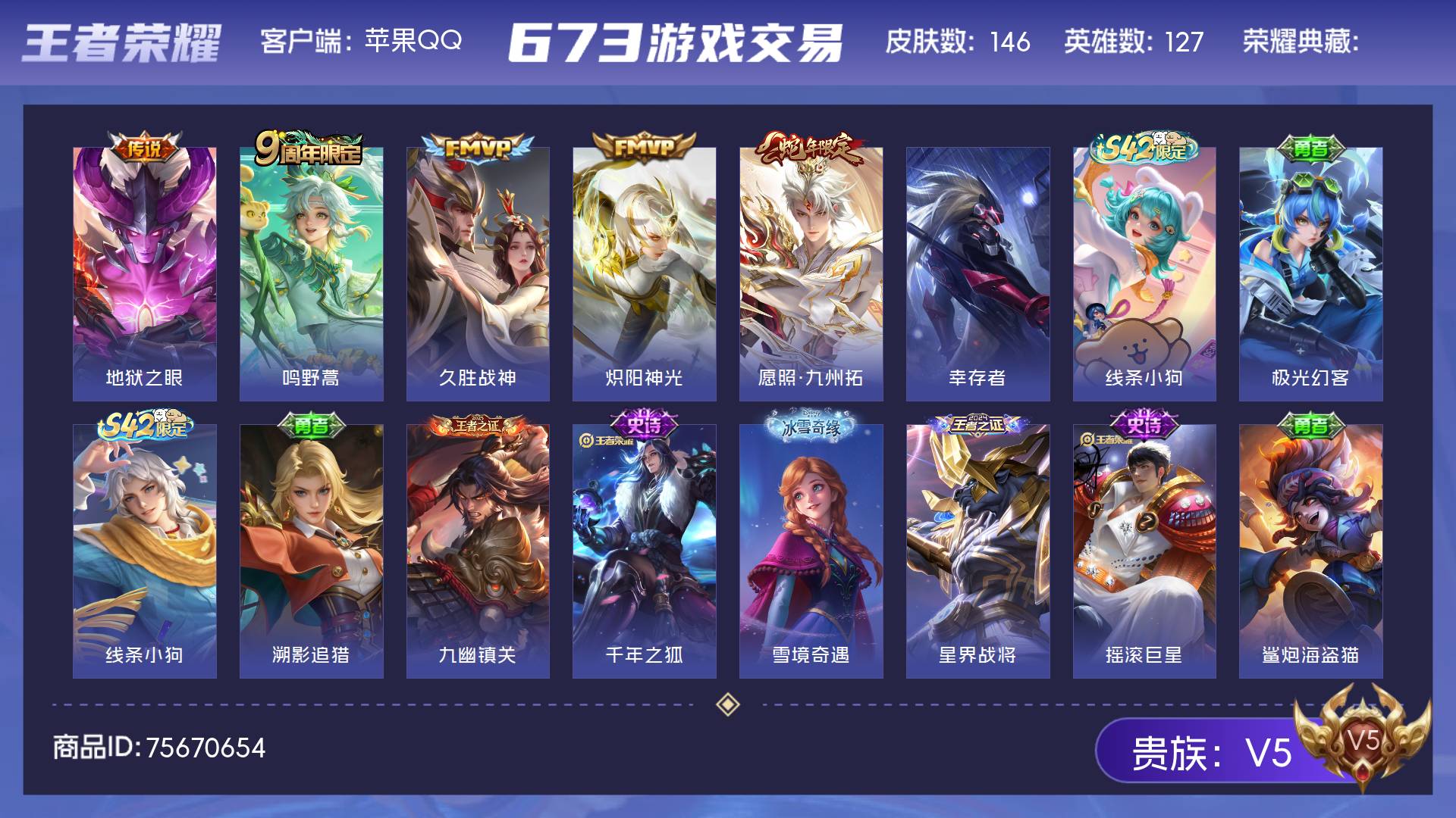 V5 皮肤146 英雄127 绝世王者 传说5 其他皮肤146