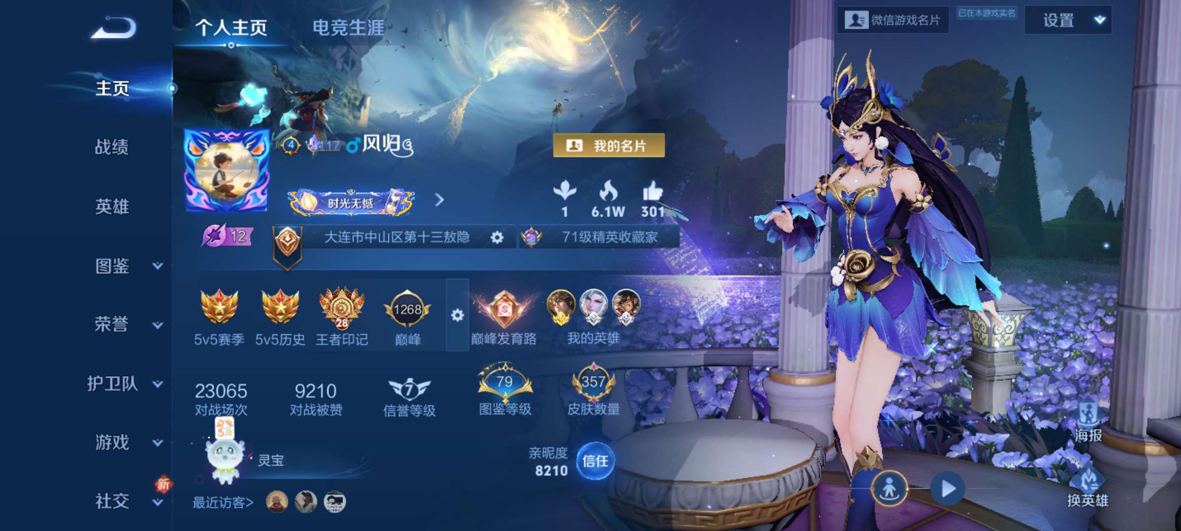 实名: 可修改 贵族等级: V8 英雄数: 126 皮肤数: 213 荣耀水晶