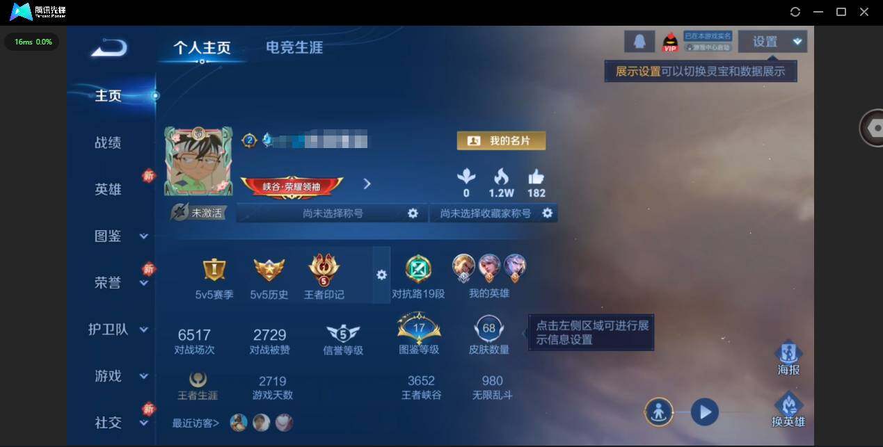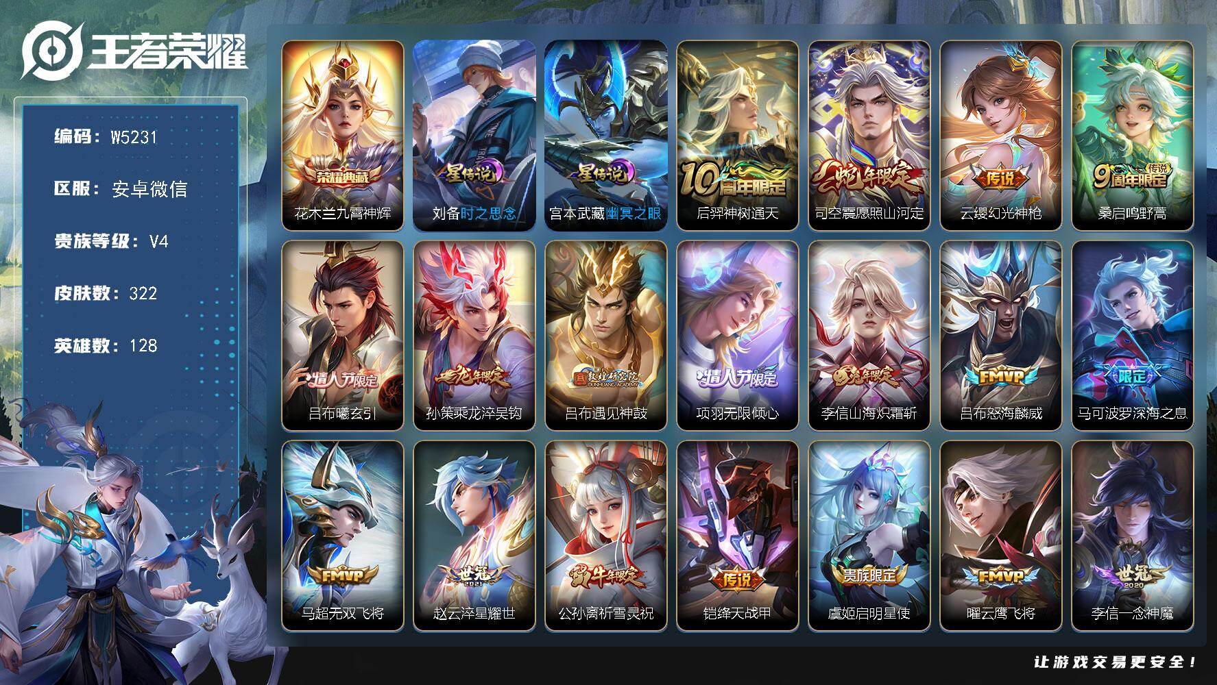 贵族等级: V4 英雄数: 109 皮肤数: 68 传说皮: 一念神魔 限定皮