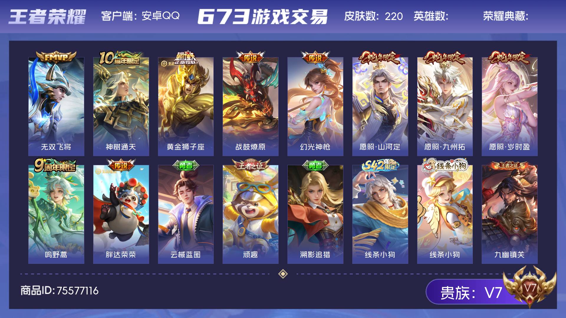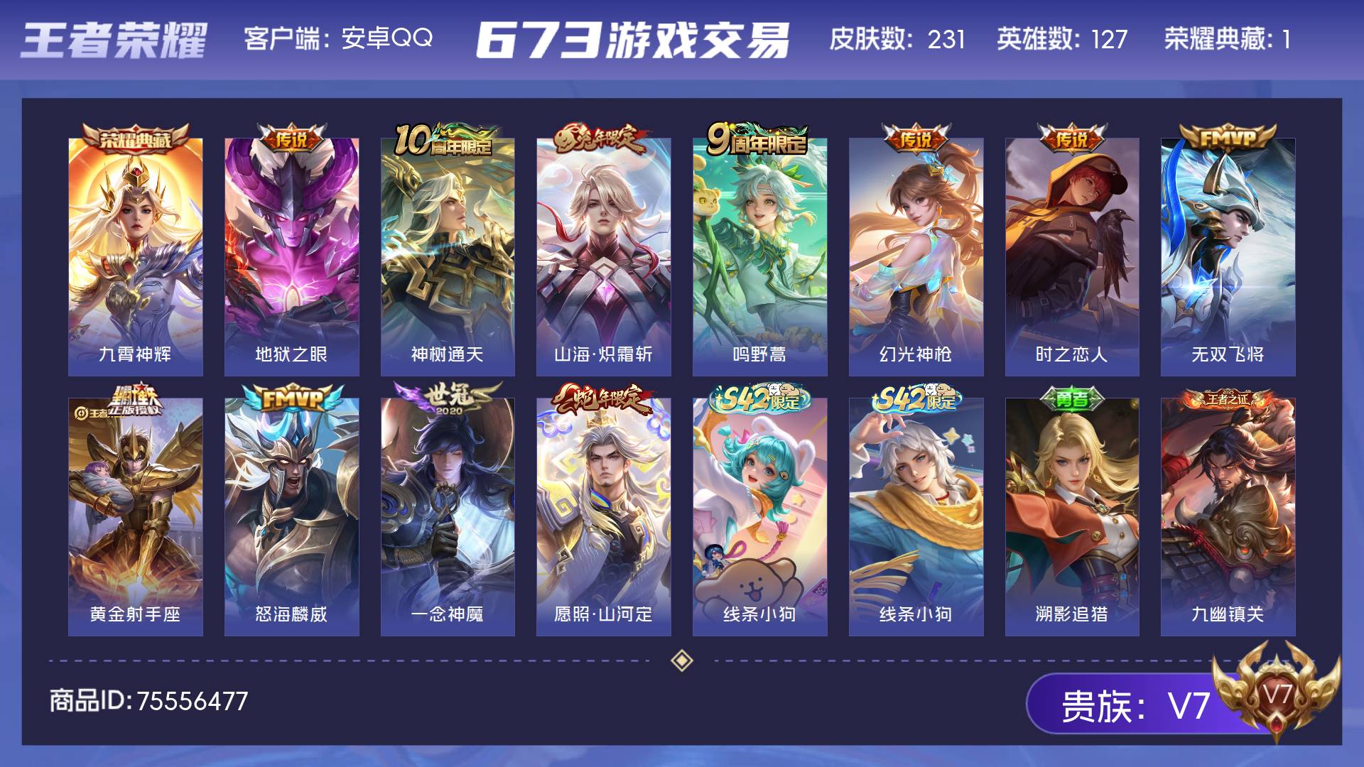 V7 皮肤231 英雄127 绝世王者 荣耀典藏1 传说11 其他皮肤225