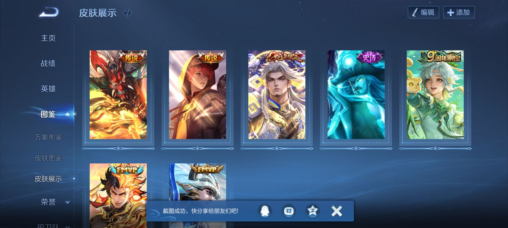 [王者荣耀]V71典藏12传说78史诗258皮肤绝世王者