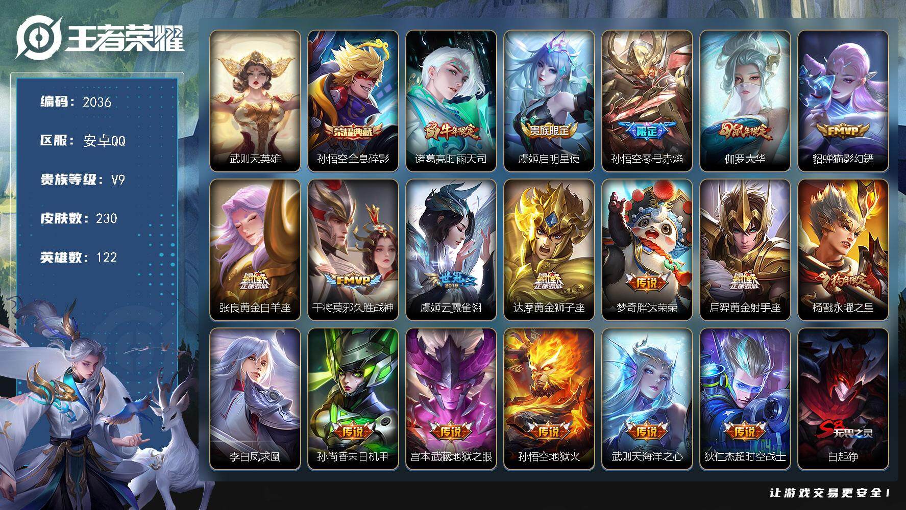 安卓Q-V9-秩序白银III段位-122英雄-230皮肤-1典藏皮肤-1典藏英