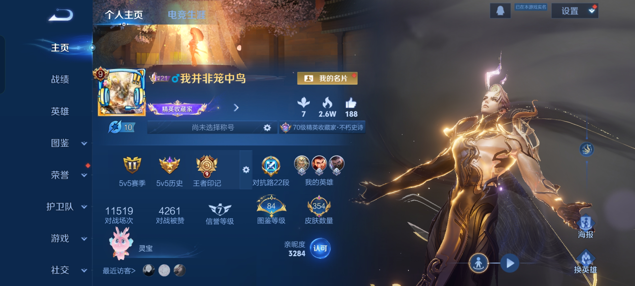 【金标妲己】贵族等级: V10 英雄数: 124 皮肤数: 415 荣耀水晶:
