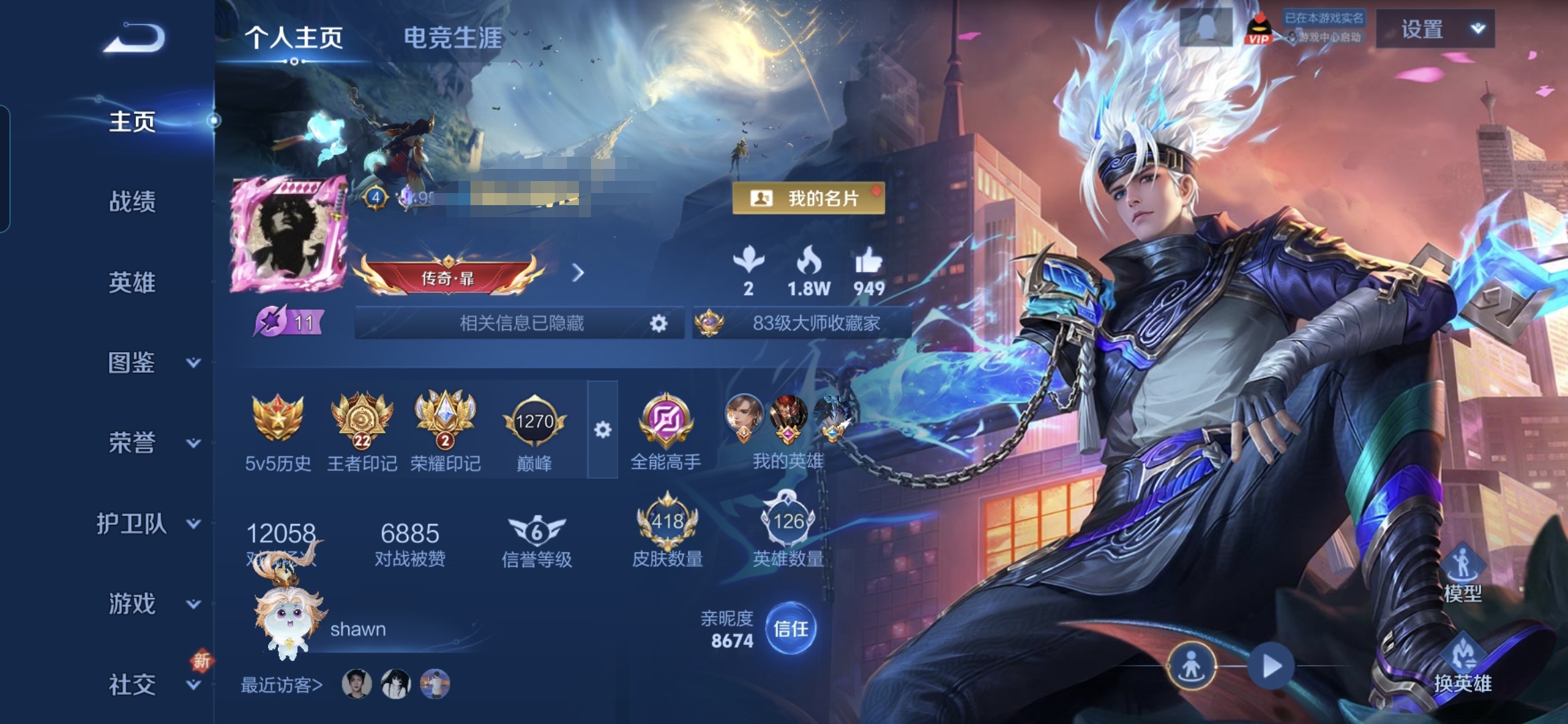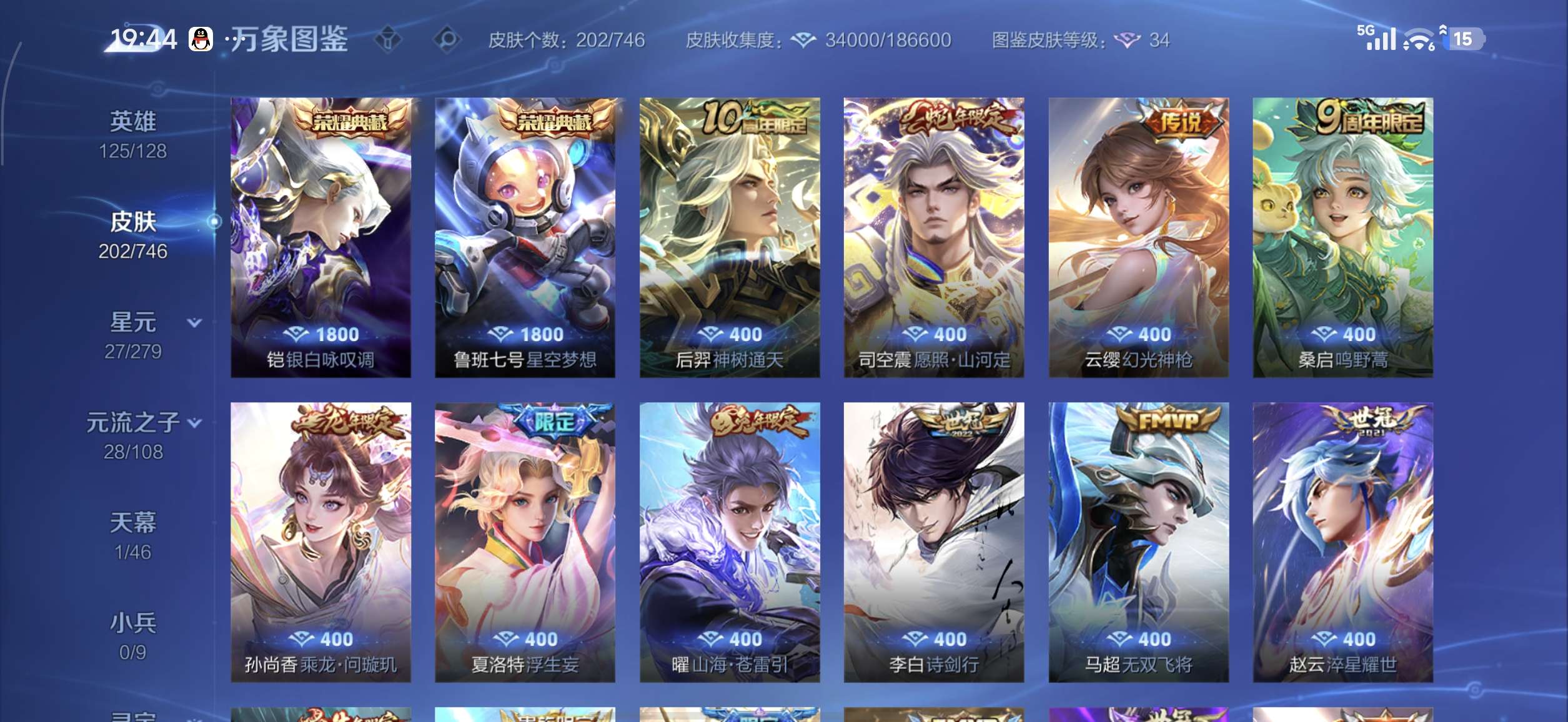 安卓Q-V0-永恒钻石II段位-112英雄-105皮肤-0典藏-0珍品无双-0