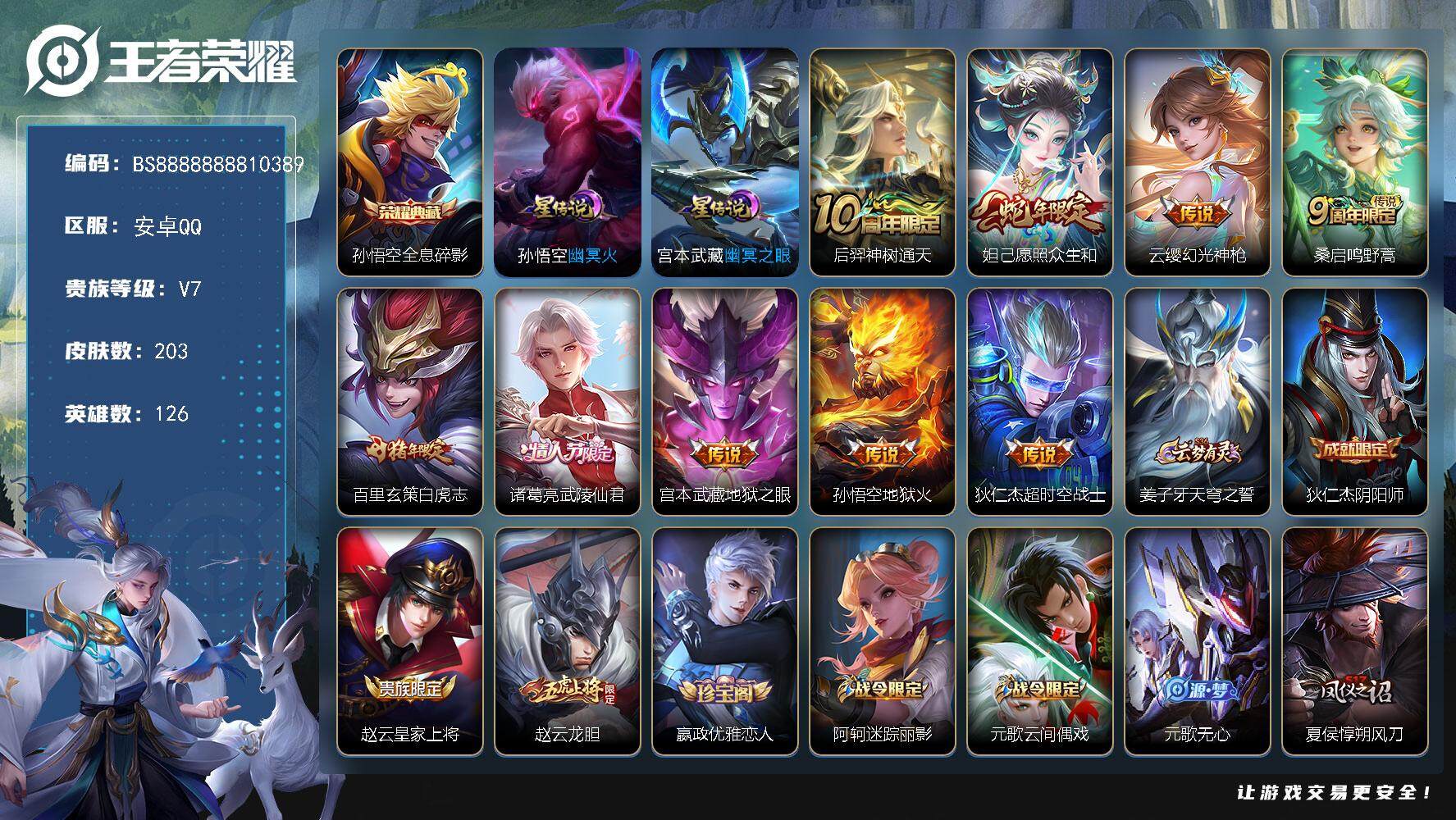 安卓Q-V10-至尊星耀III段位-128英雄-251皮肤-12典藏-0珍品无