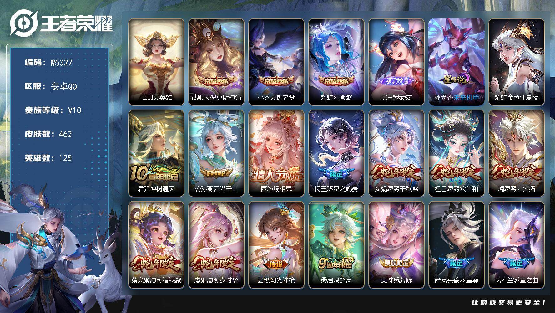 不可二次-贵10-128英雄-462皮肤-4典藏-2星元-1无双-55传说-175限定-14按键-贵族积分217322