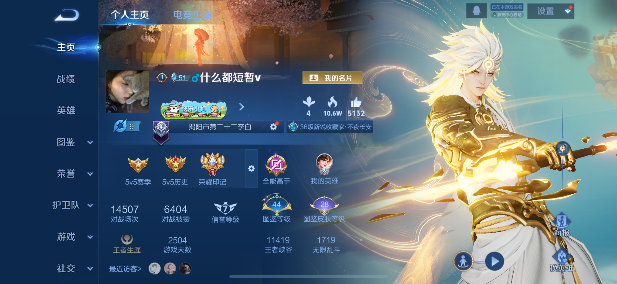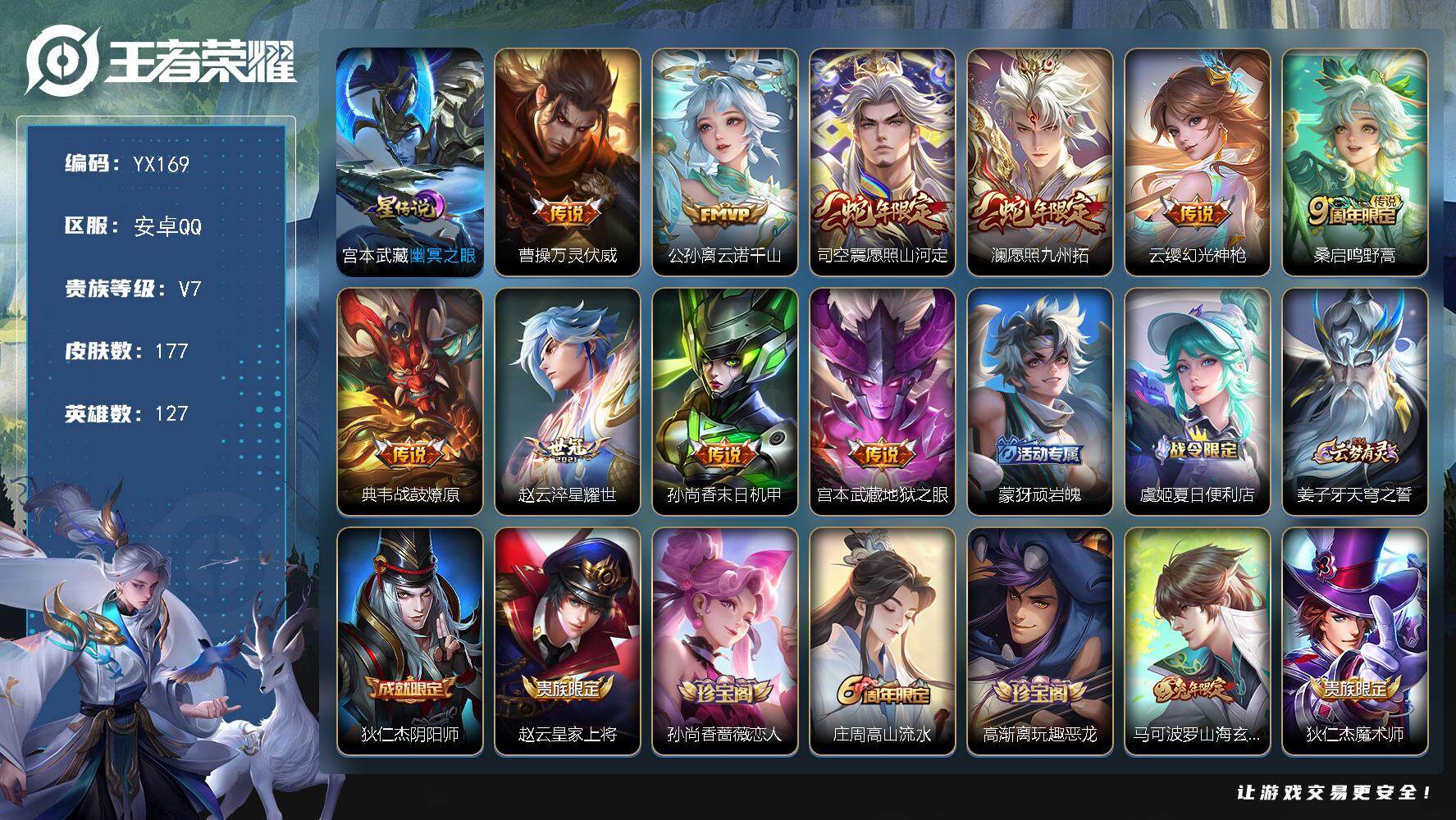 V6 皮肤170 英雄126 至尊星耀 传说6 其他皮肤170