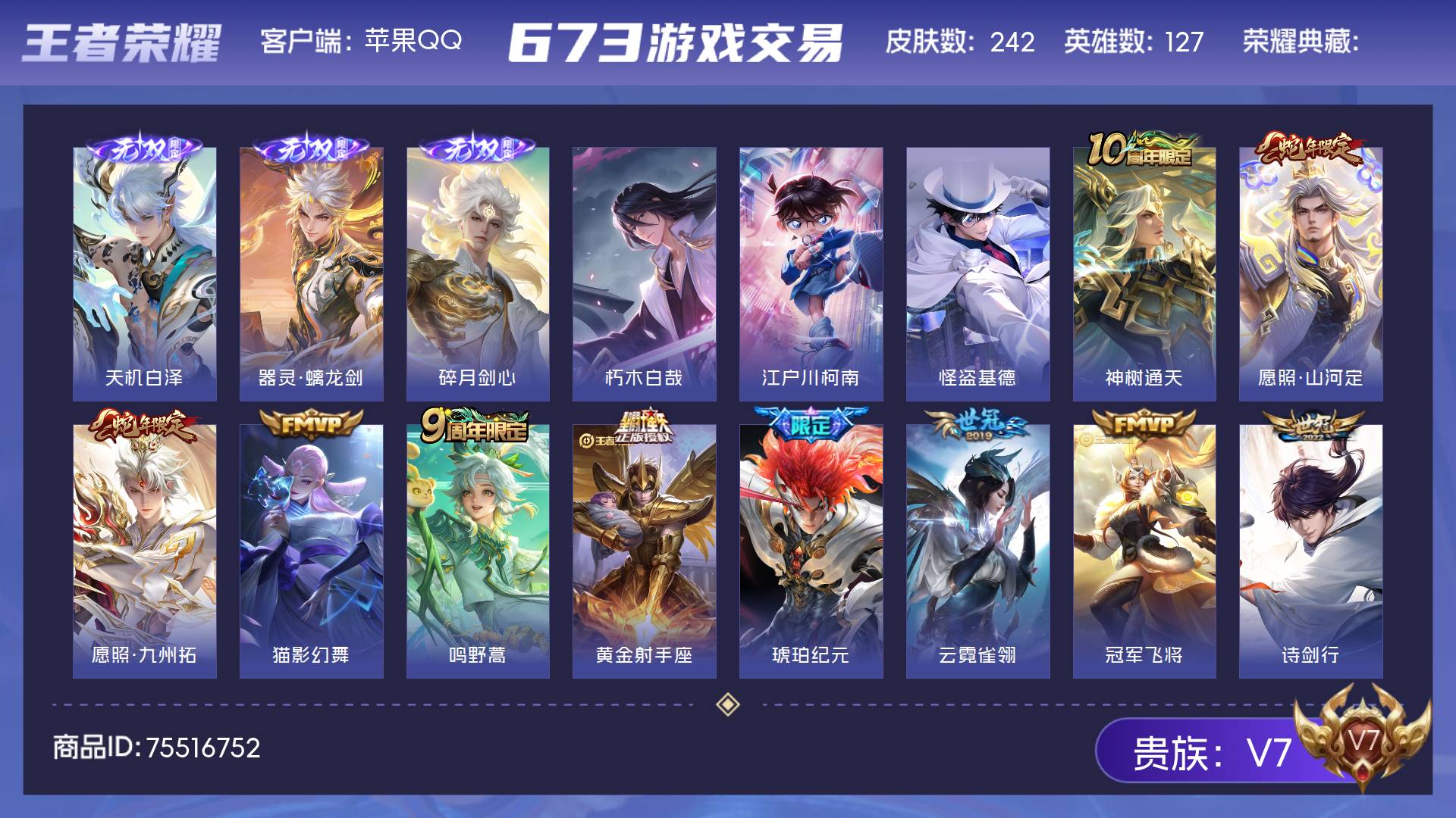 V7 皮肤242 英雄127 至尊星耀 无双皮肤3 珍品传说3 传说14 其他皮肤228