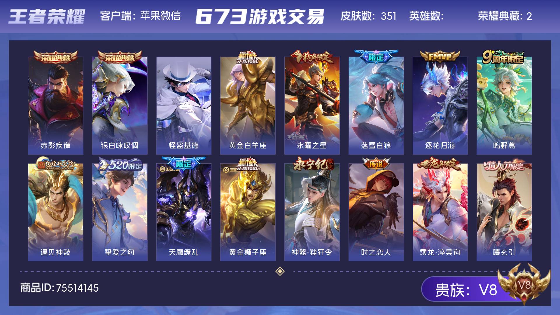 V8 皮肤351 至尊星耀 荣耀典藏2 珍品传说1 星传说3 传说28 其他皮肤324