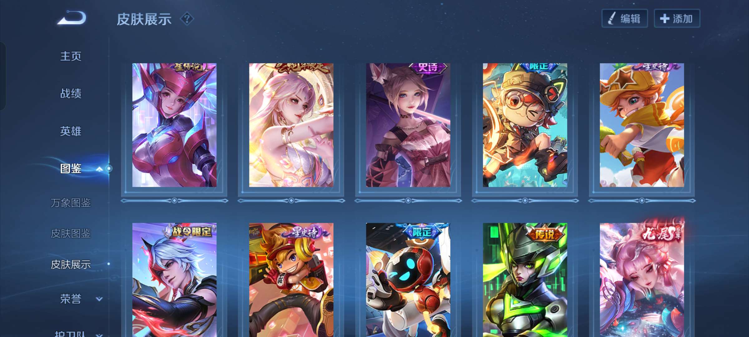 V7 皮肤243 至尊星耀 荣耀典藏2 无双皮肤1 珍品传说1 传说13 其他皮肤232