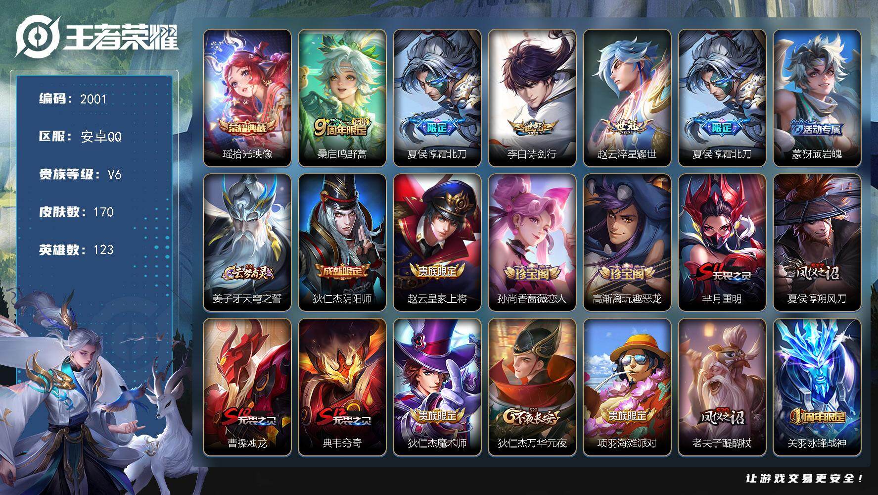df安卓Q-V6【特价出售,小女号,瑶典藏,】-123英雄-170皮肤-1典藏