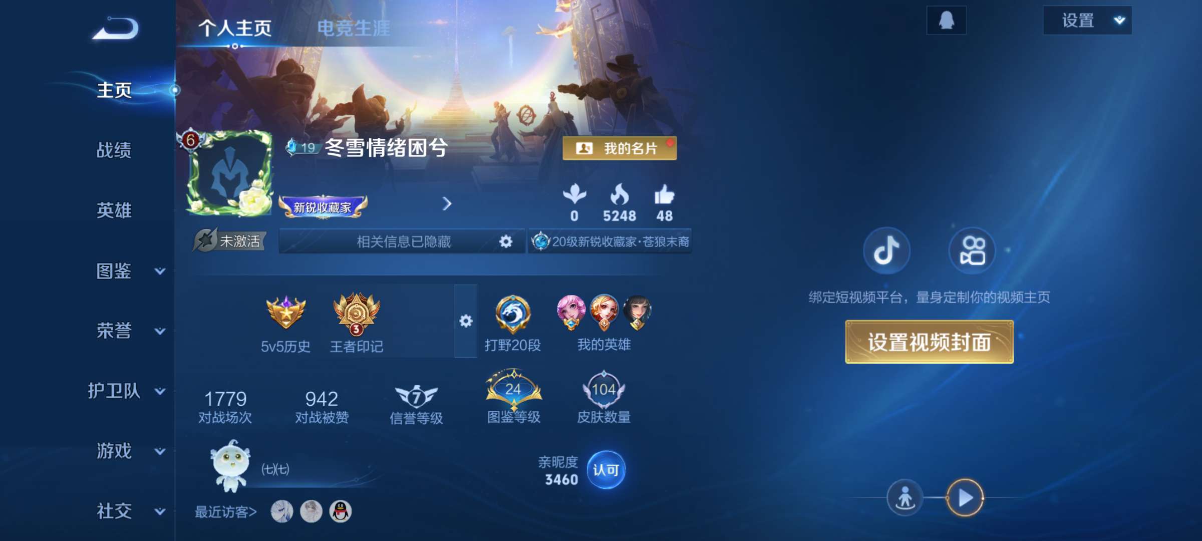 安卓QQ/非凡王者/342皮肤/128英雄/3典藏/0珍品无双/0无双/1珍品传说/38传说/104