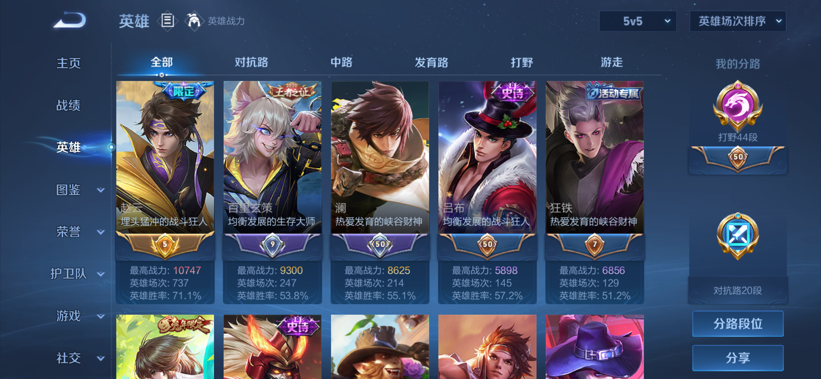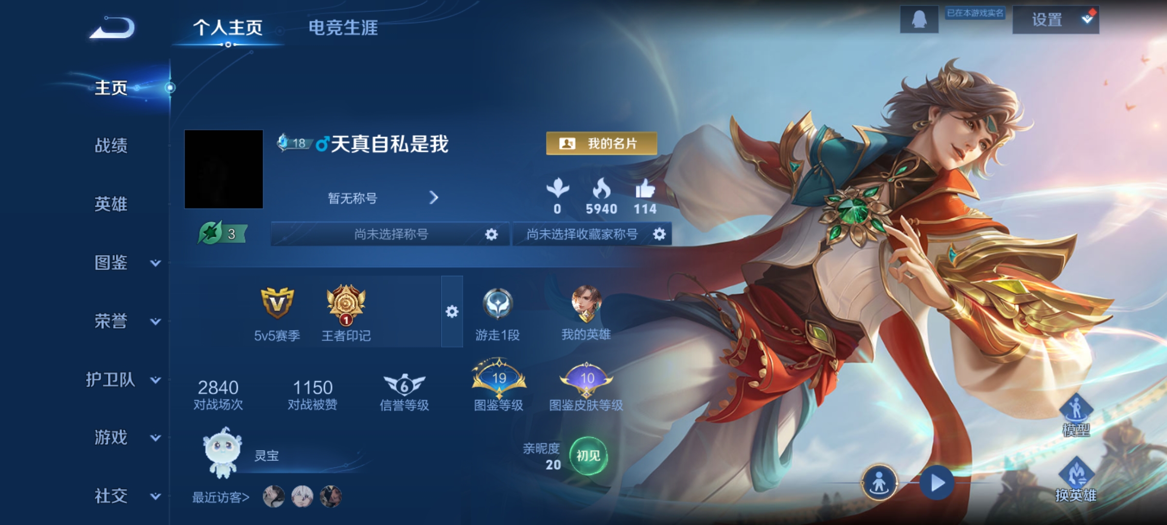 小国李白,打野62段,很多省标皮肤数424典藏皮肤数4无双皮