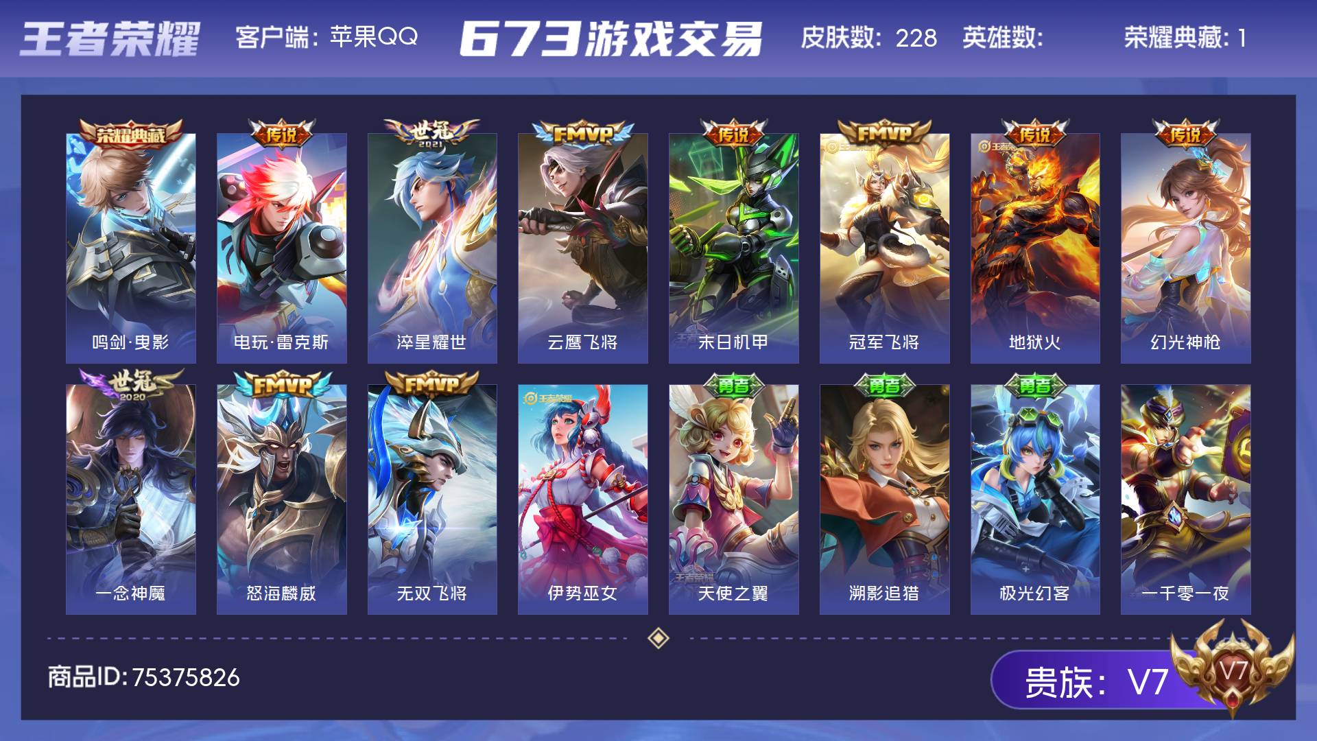 V7 皮肤228 至尊星耀 荣耀典藏1 传说10 其他皮肤223