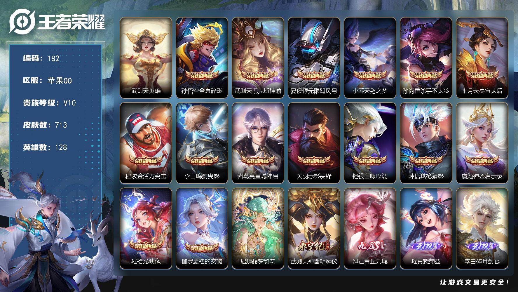 iOS/极品V10-713皮肤15典藏+2小兵典藏/1珍品无双12无双9珍品传