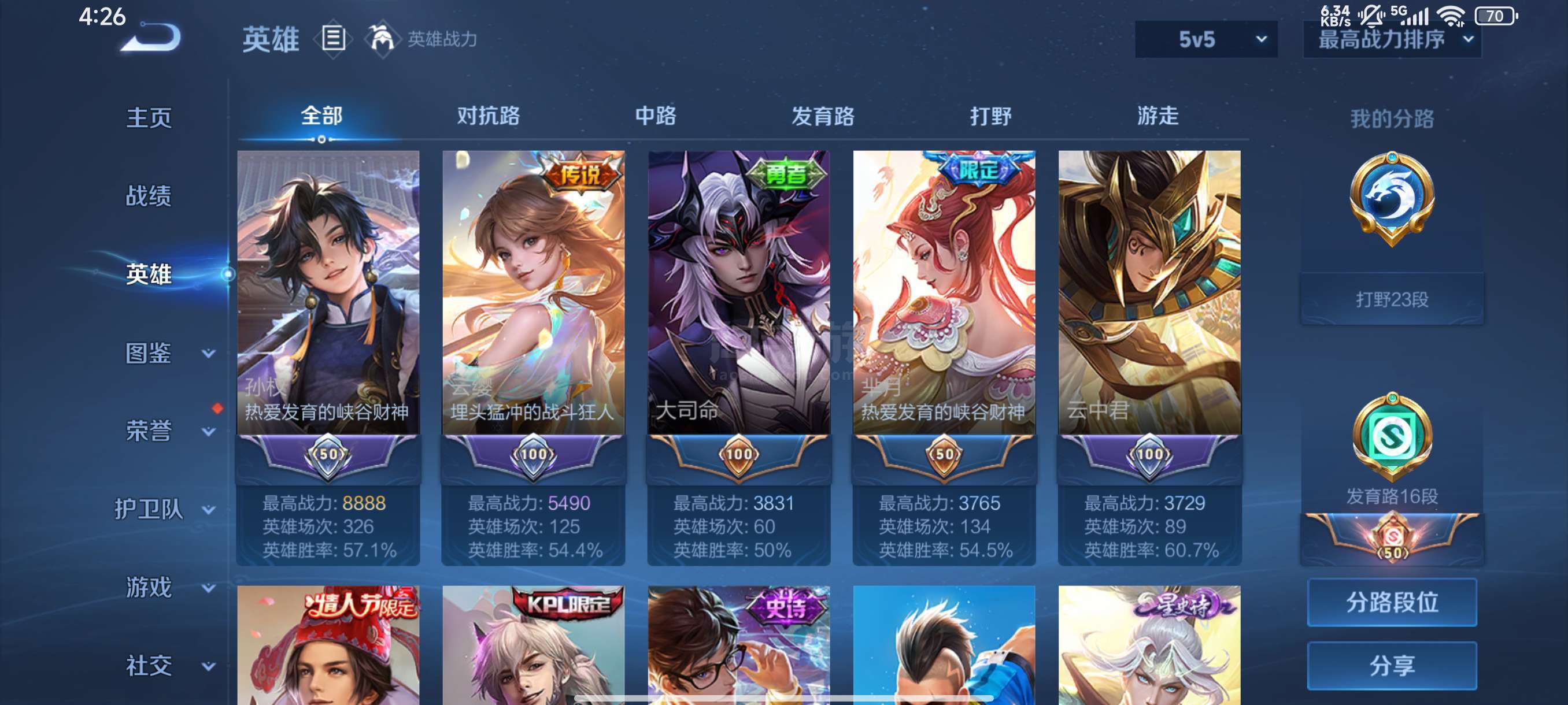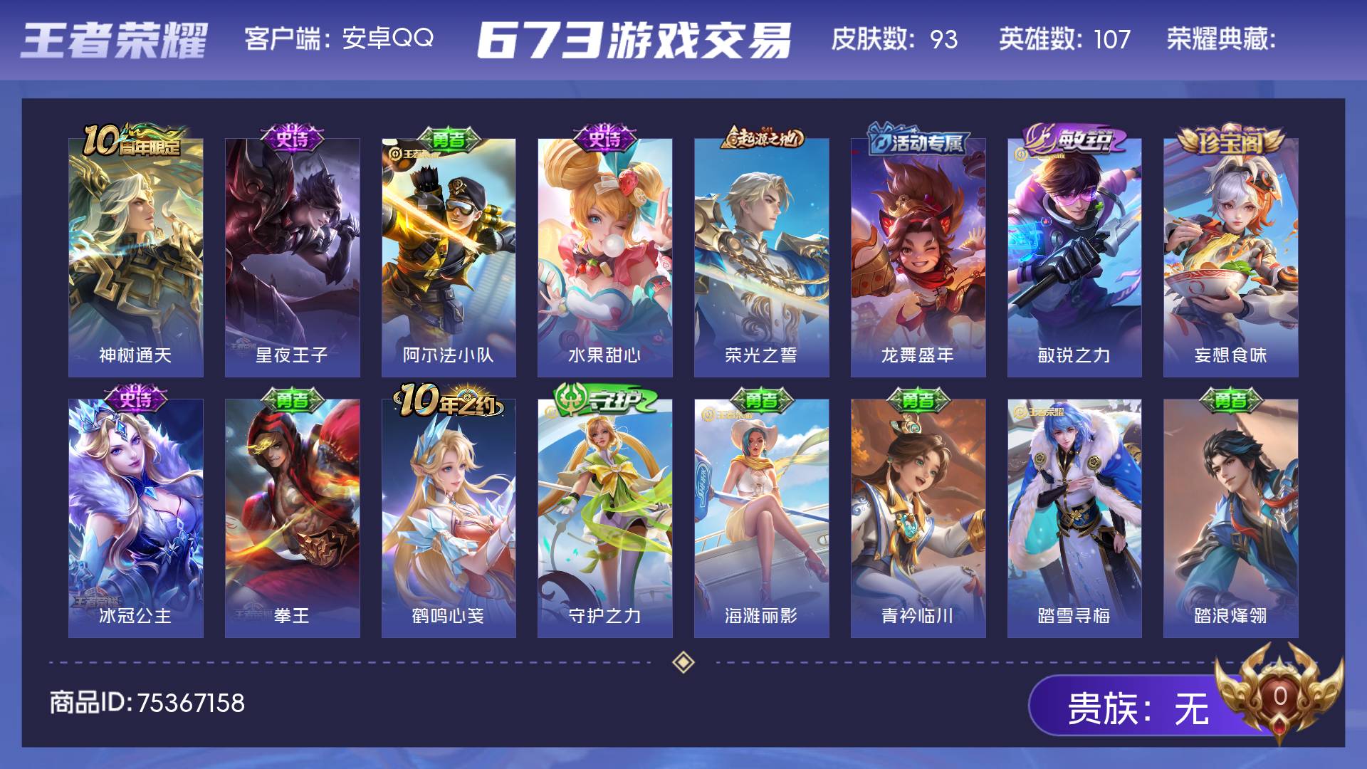 可二次-贵6-127英雄-179皮肤-2典藏-1星元-5传说-60限定-9按键-贵族积分10502
