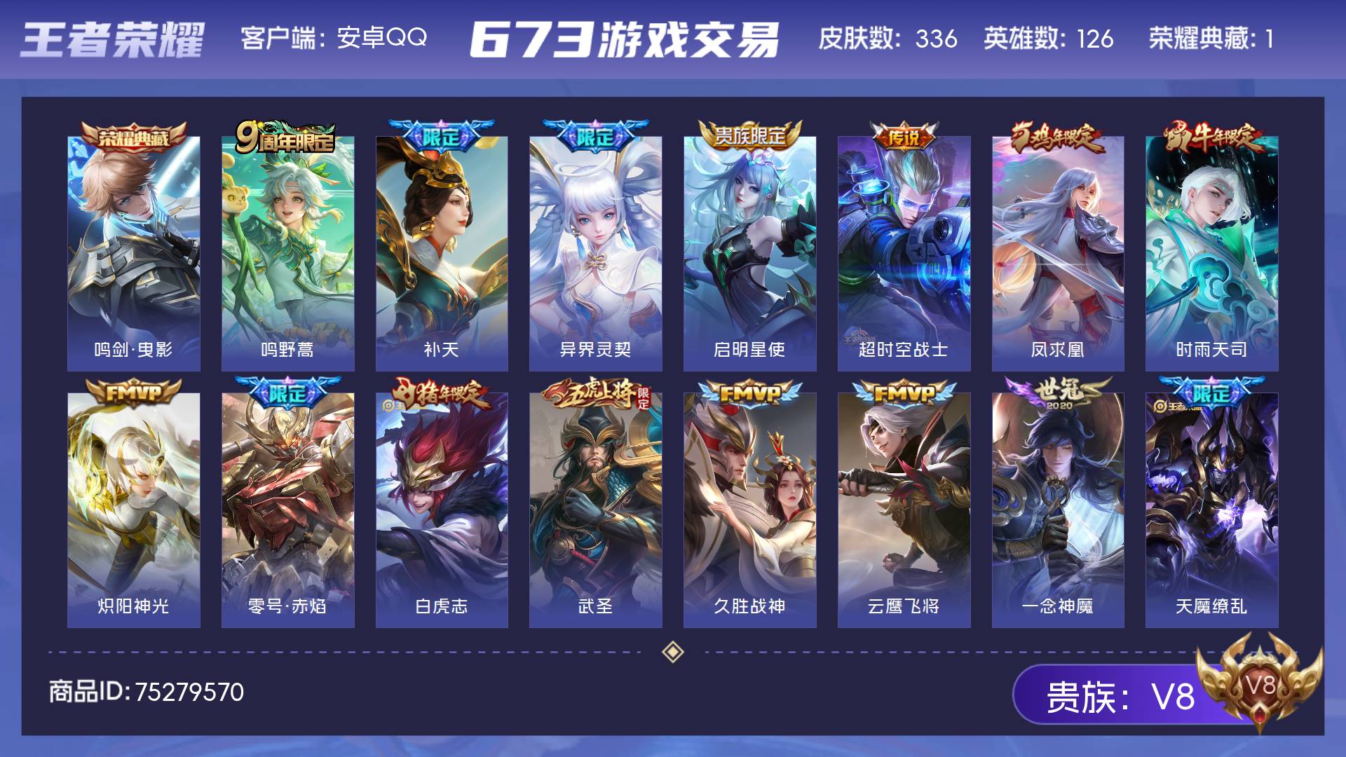 V8 皮肤336 英雄126 非凡王者 荣耀典藏1 传说16 其他皮肤325