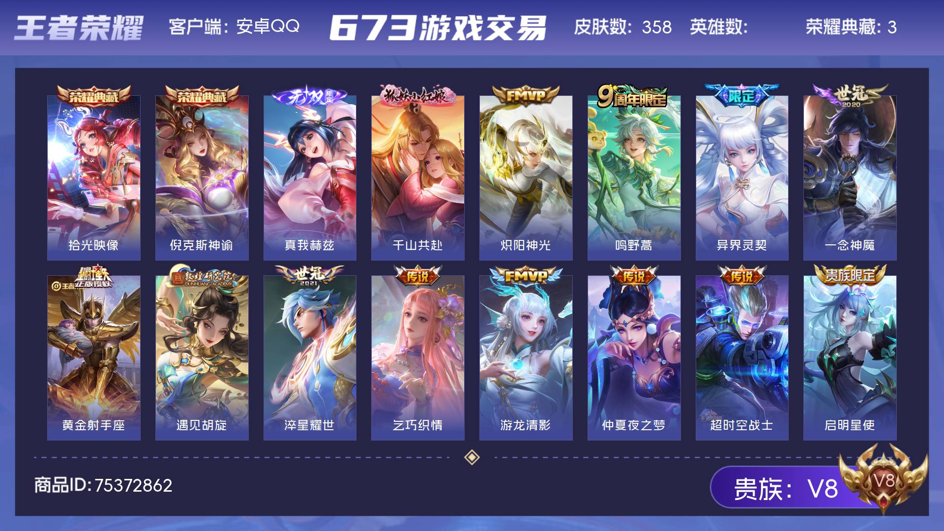 V8 皮肤358 至尊星耀 荣耀典藏3 无双皮肤1 传说24 其他皮肤336