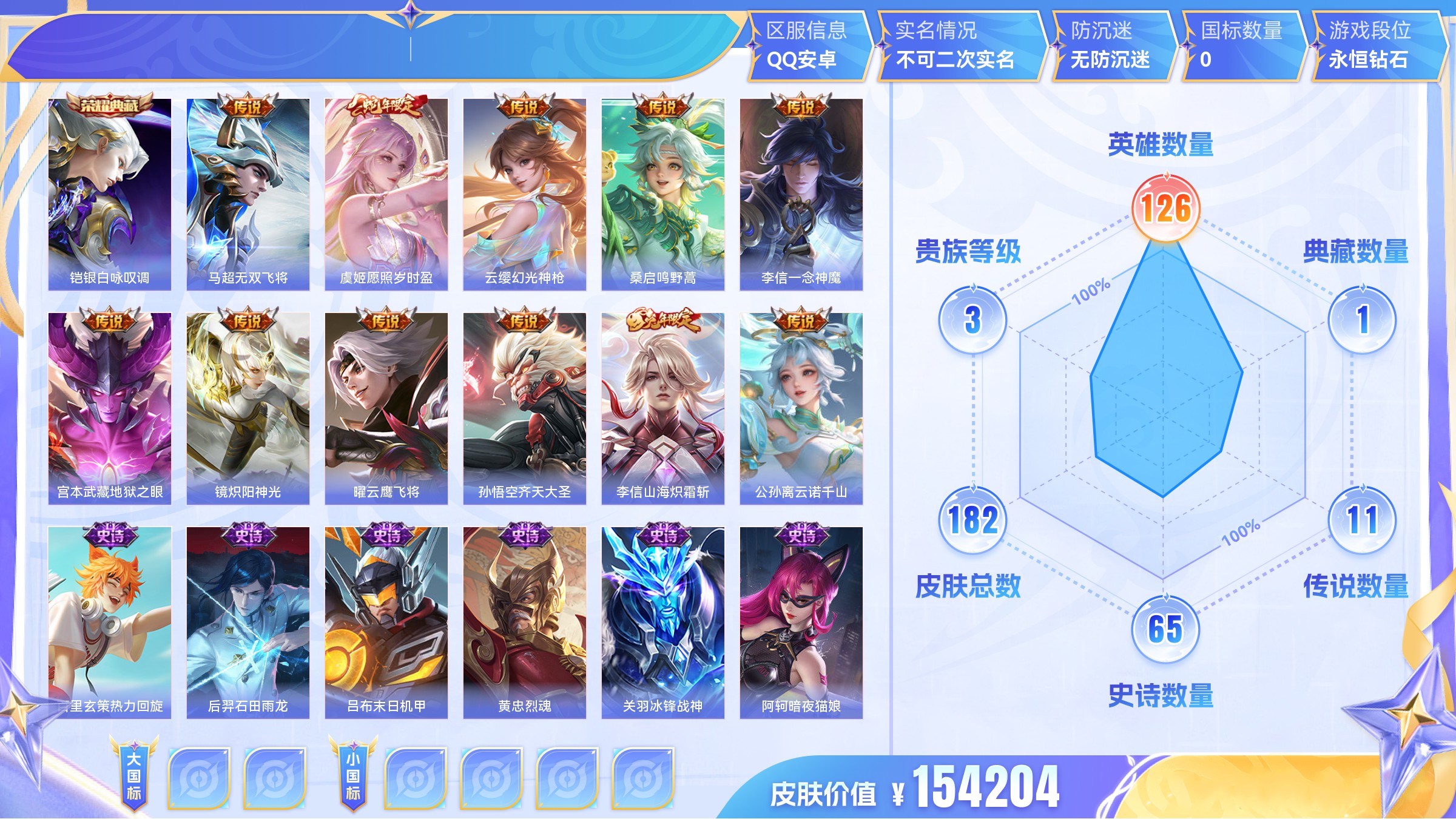 传说10 史诗37 限定49 英雄122 皮肤136