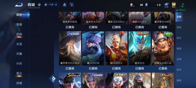 典藏1 传说2 史诗9 限定23 英雄79 皮肤61