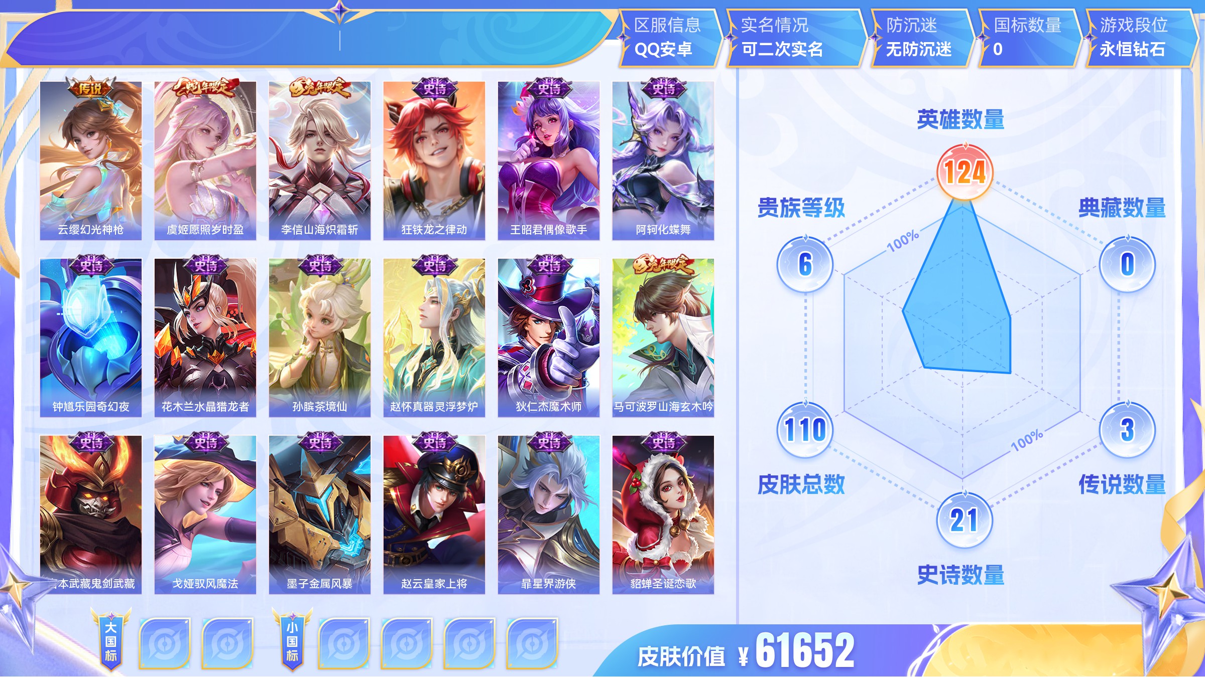 传说3 史诗21 限定30 英雄124 皮肤110 稀