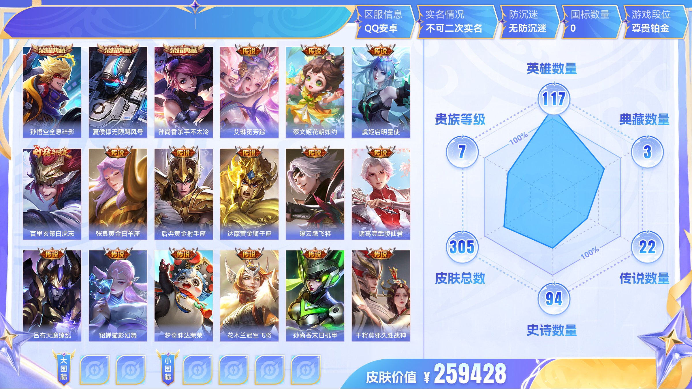 传说3 史诗43 限定41 英雄122 皮肤133 稀