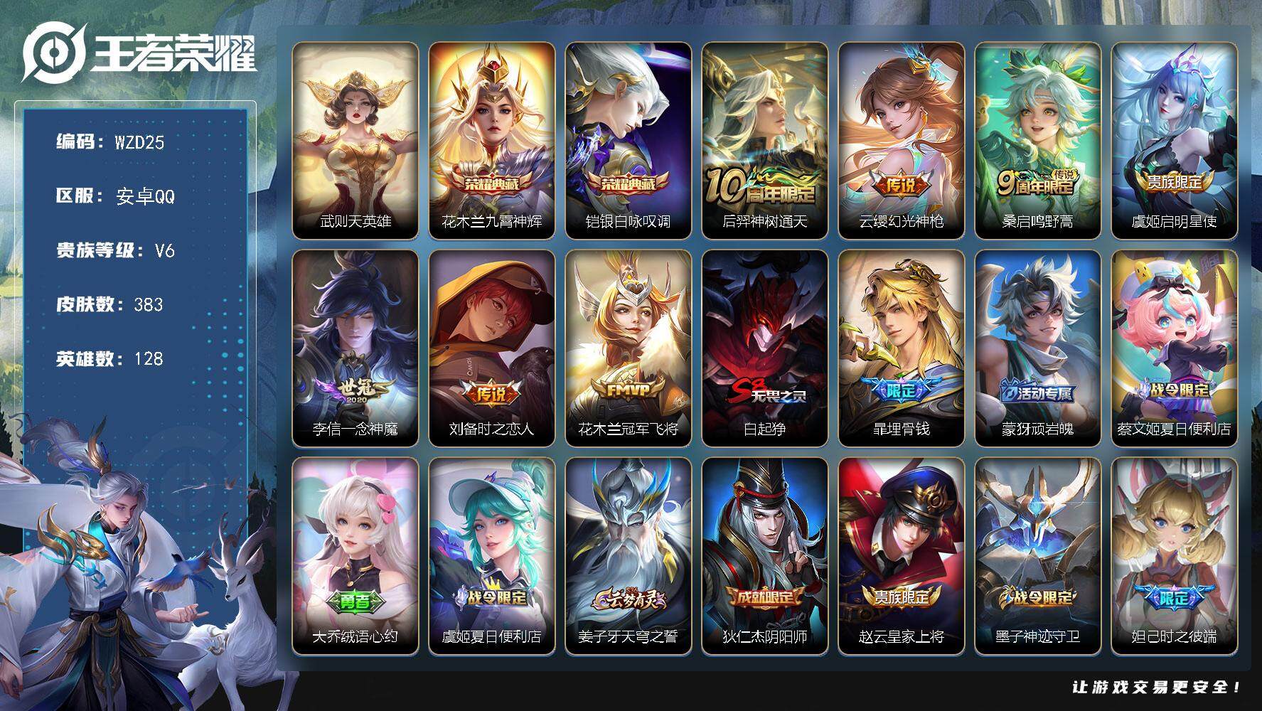 1888917 绝版冰封战神 安卓Q-V5-最强王者段位-119英雄-90皮肤