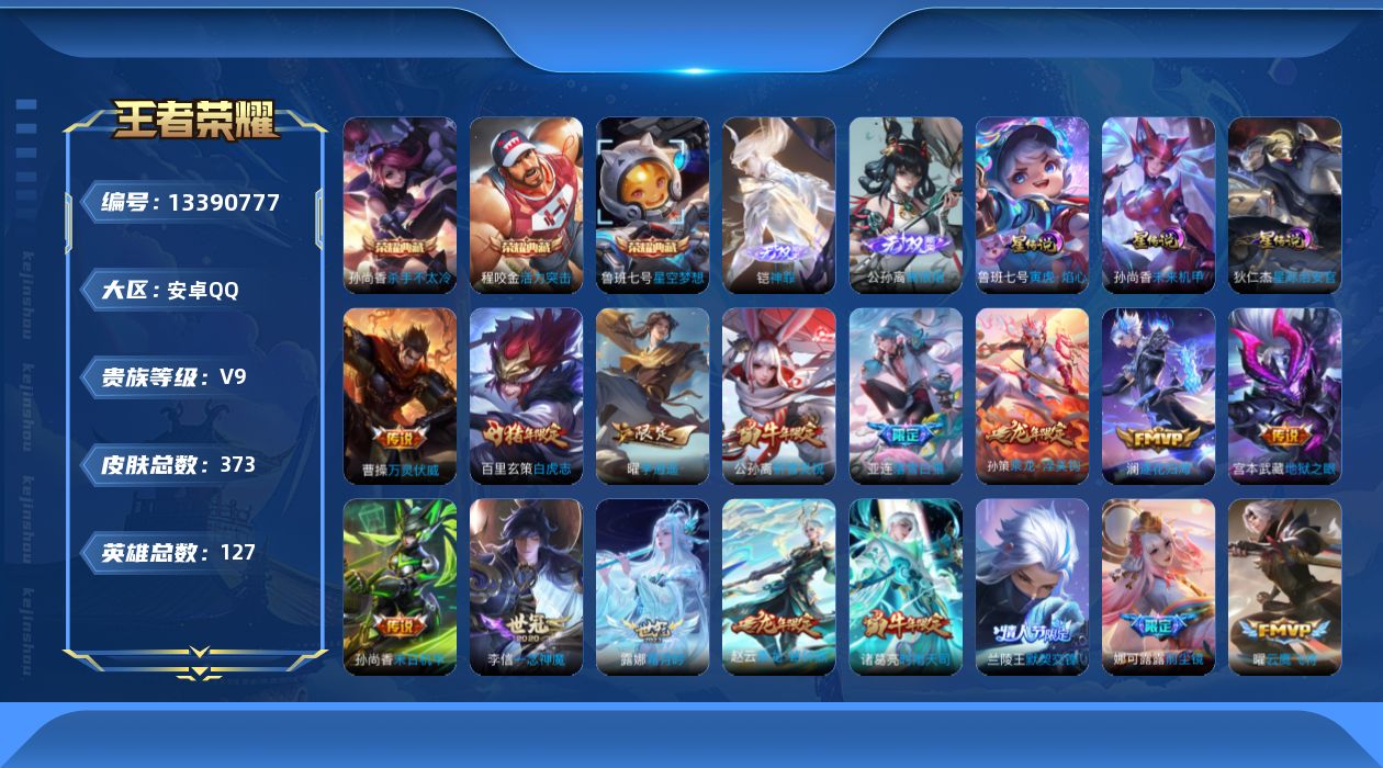 安卓QQ/非凡王者/404皮肤/127英雄/2典藏/0珍品无双/4无双/2珍品传说/41传说/121