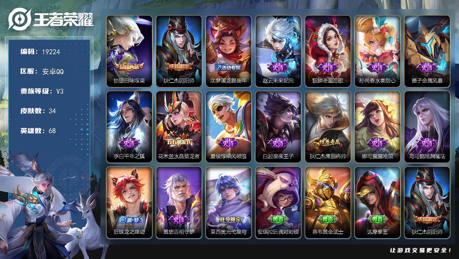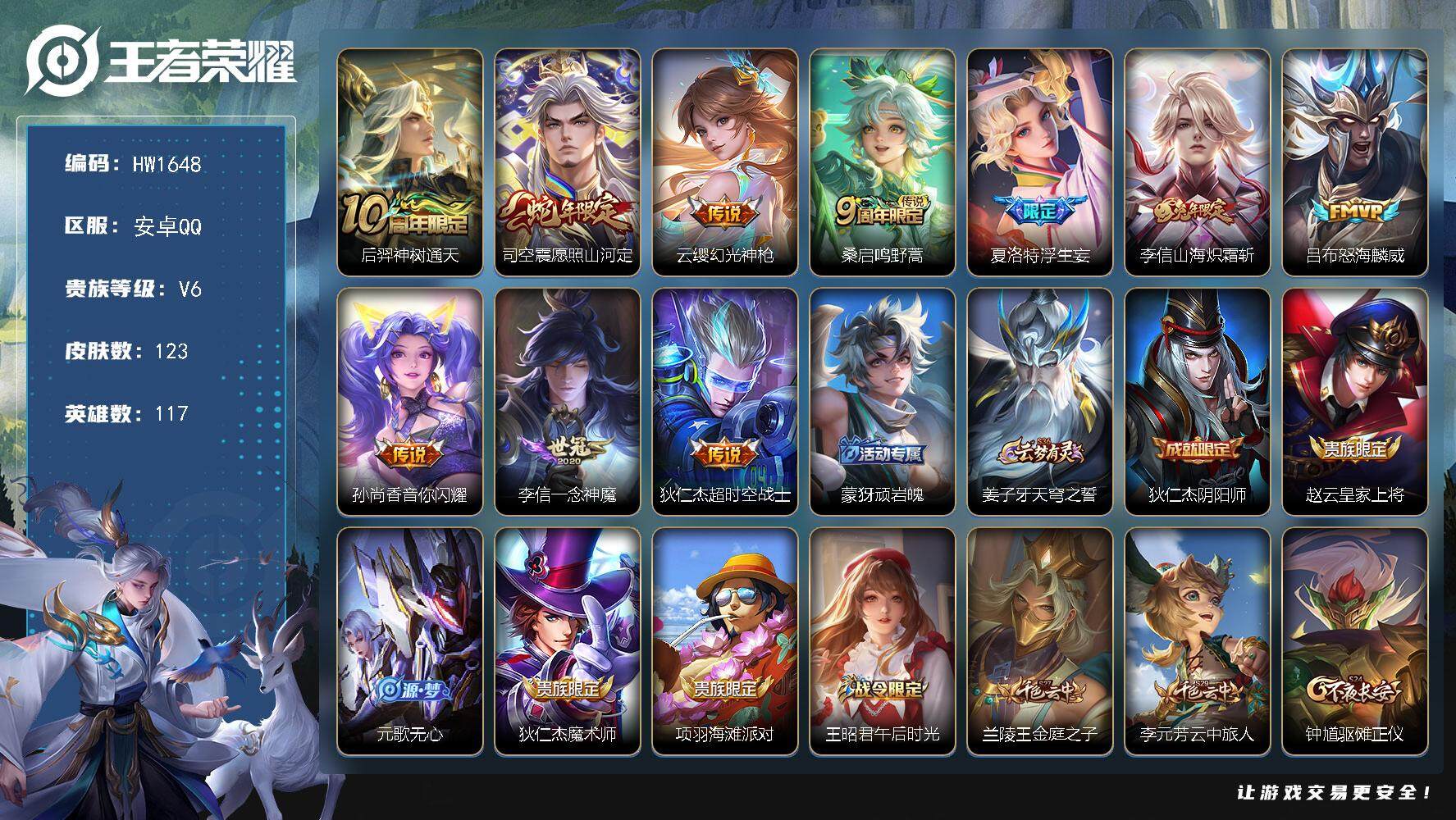 微信区 V7 有二次 皮肤145 英雄123 荣耀王者 传说8 其他皮肤57