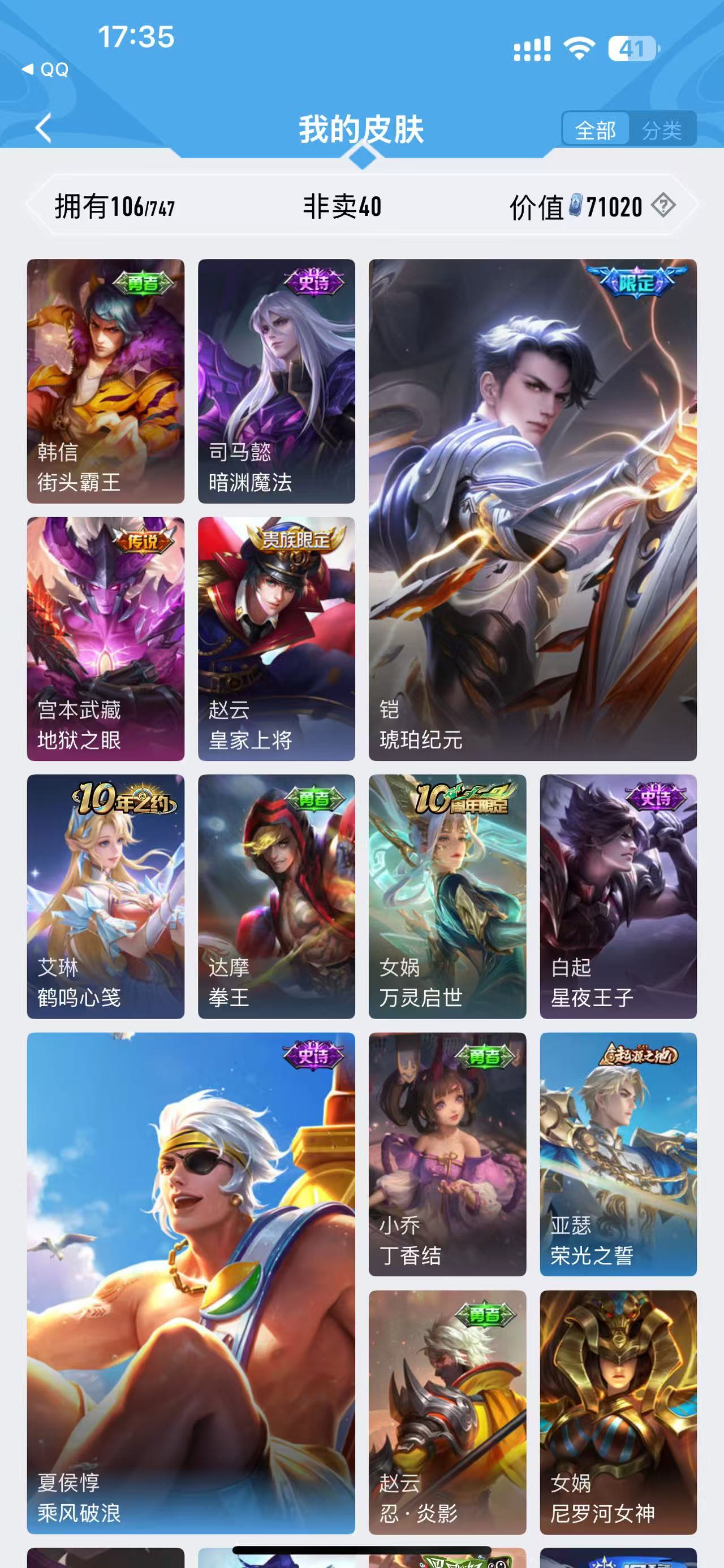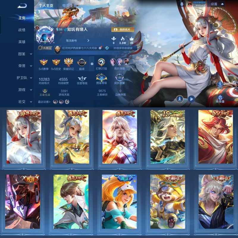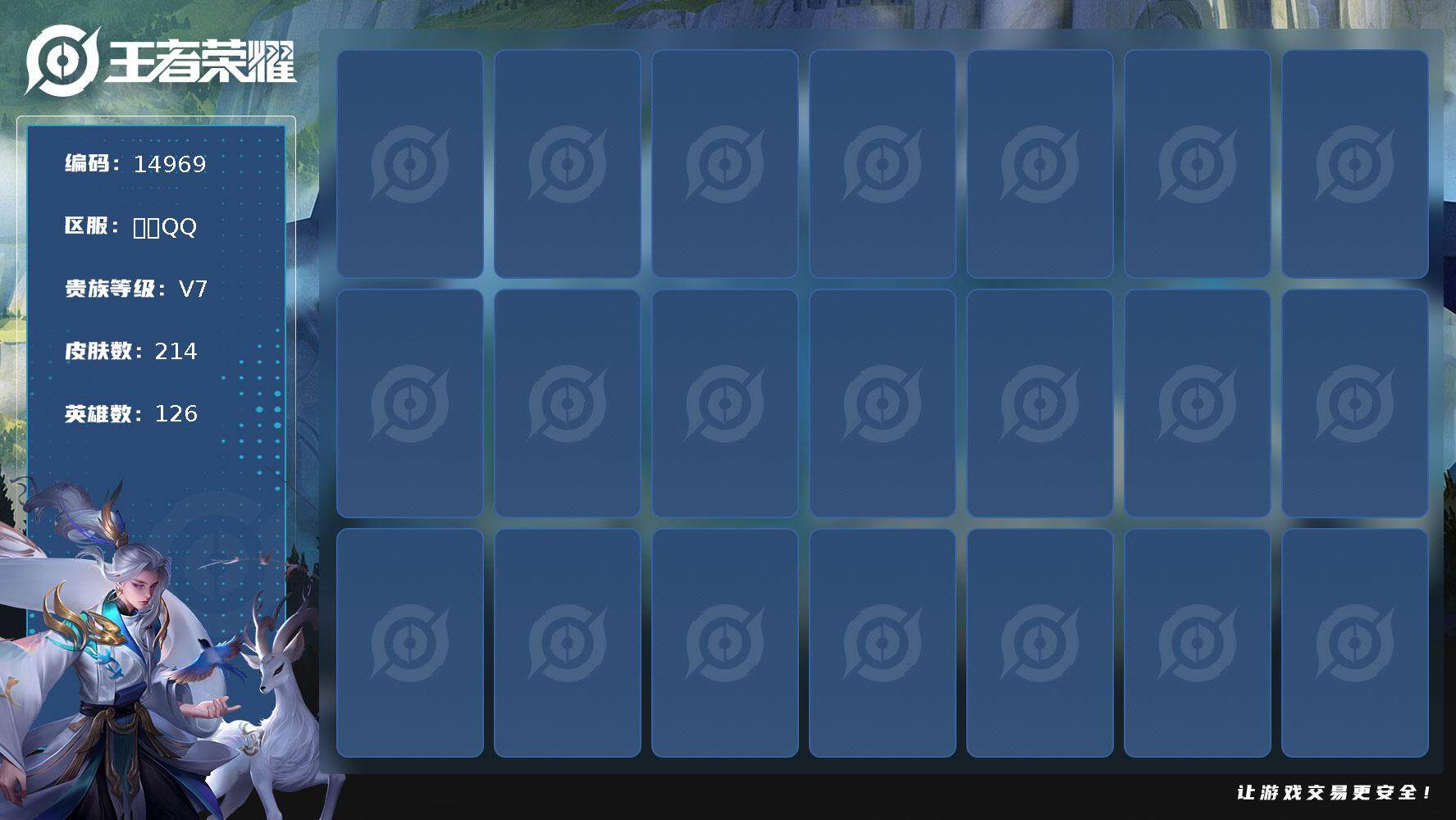 王者荣耀【安卓QQ】安卓QQ-不可二次-V9-409皮-3典藏-1无双-4珍品传说-39传说-132史诗-两个天幕