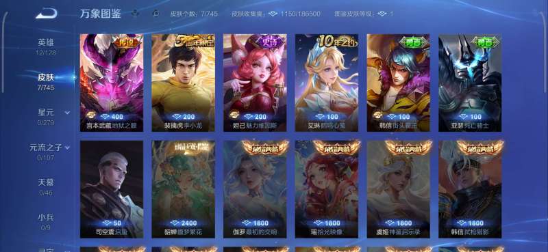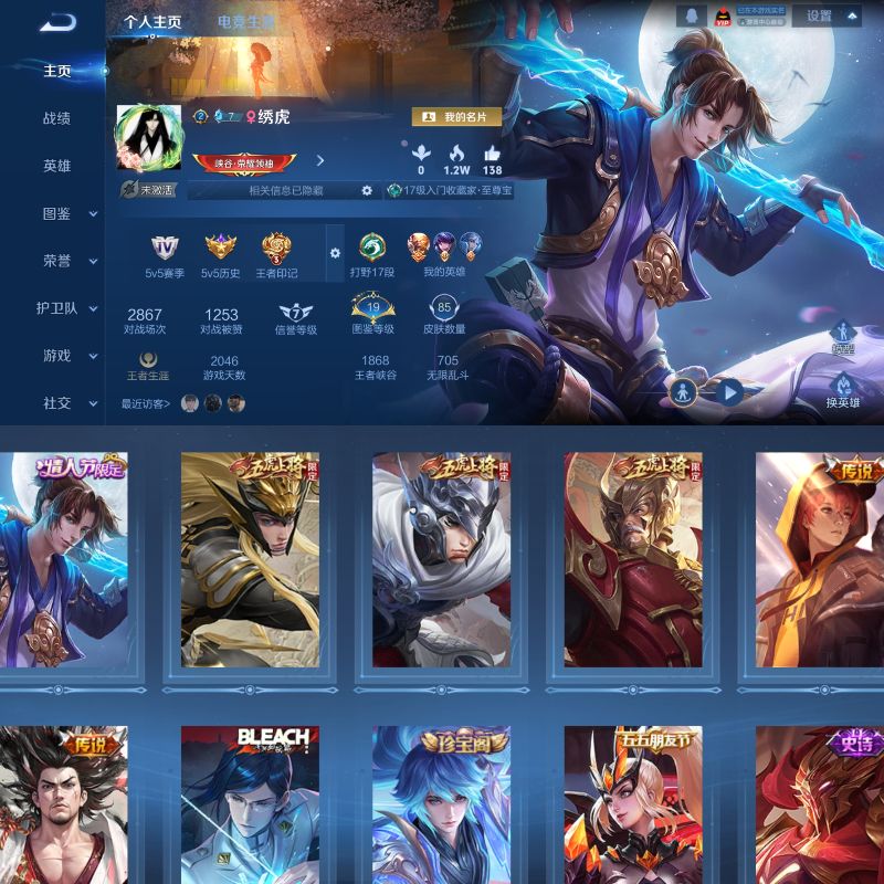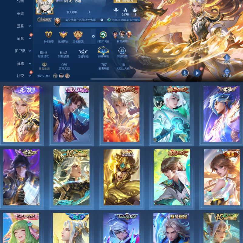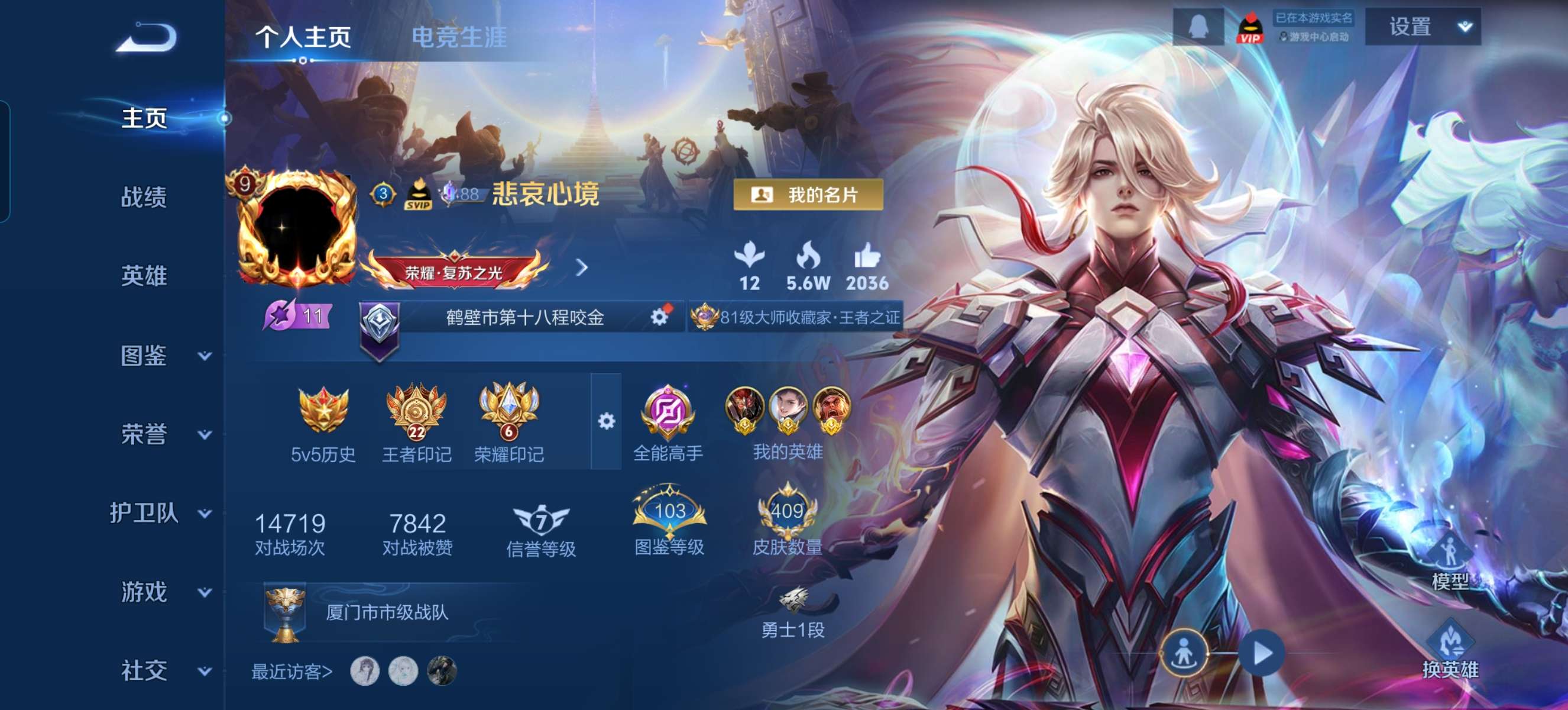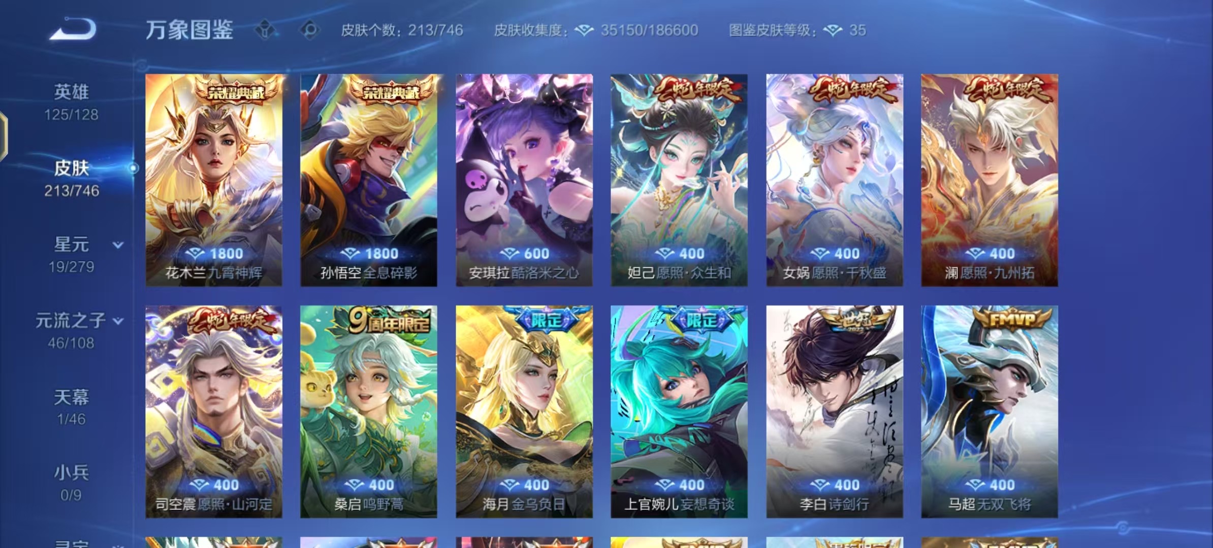 王者荣耀【安卓QQ】安卓QQ-不可二次-V9-409皮-3典藏-1无双-4珍品传说-39传说-132史诗-两个天幕