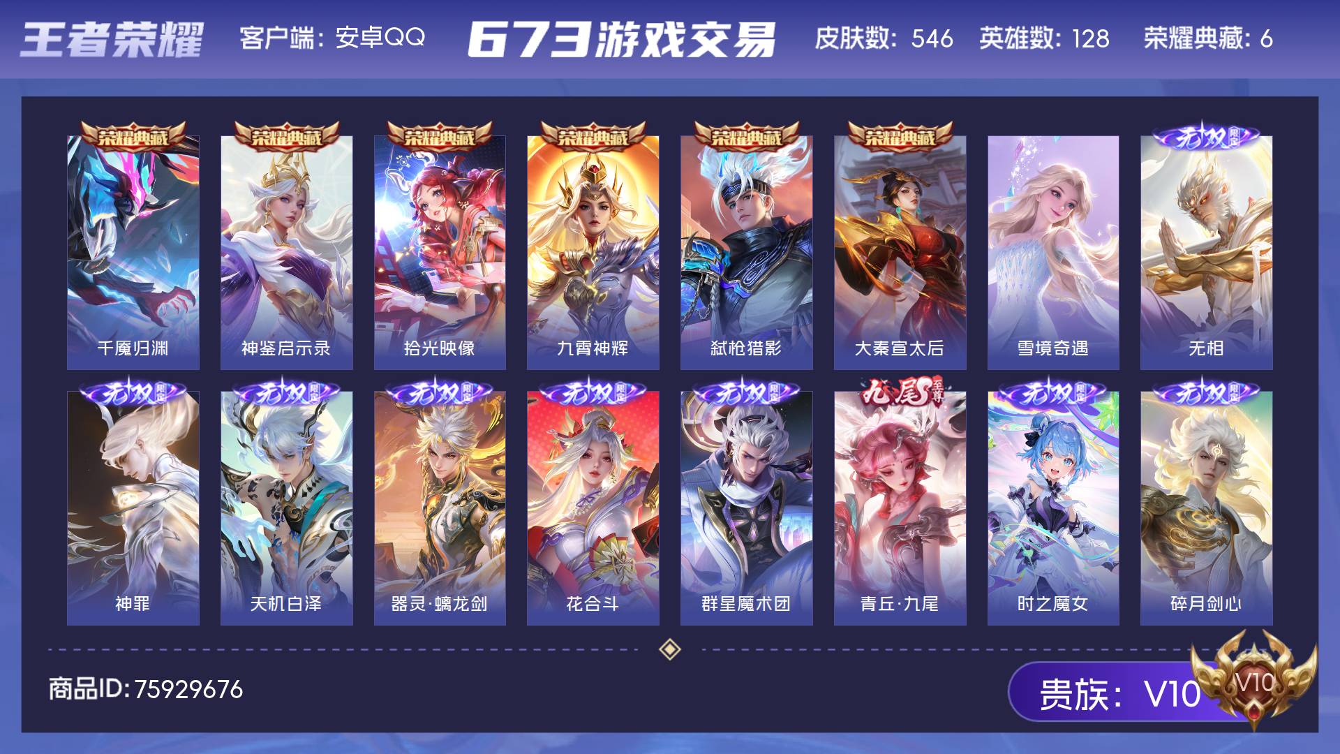 【16775655】安卓Q-V6-至尊星耀V段位-127英雄-237皮肤-1典