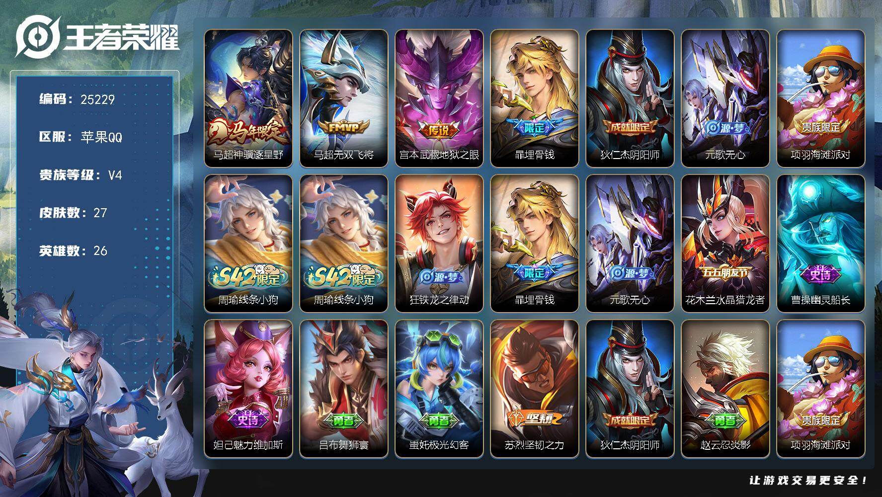 苹果QQ | 全部区服 | 可购终身包赔