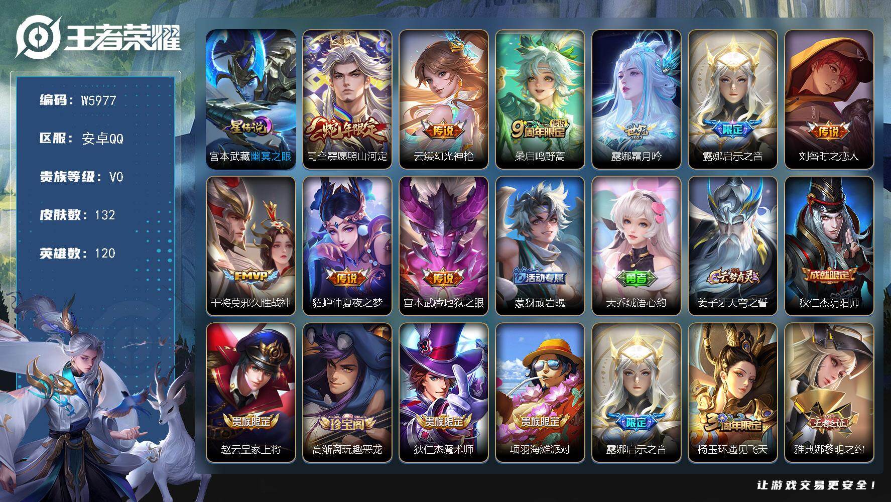 【W5979】安卓QQ-有二次-贵4-116英雄-82皮肤-6传说-31限定-