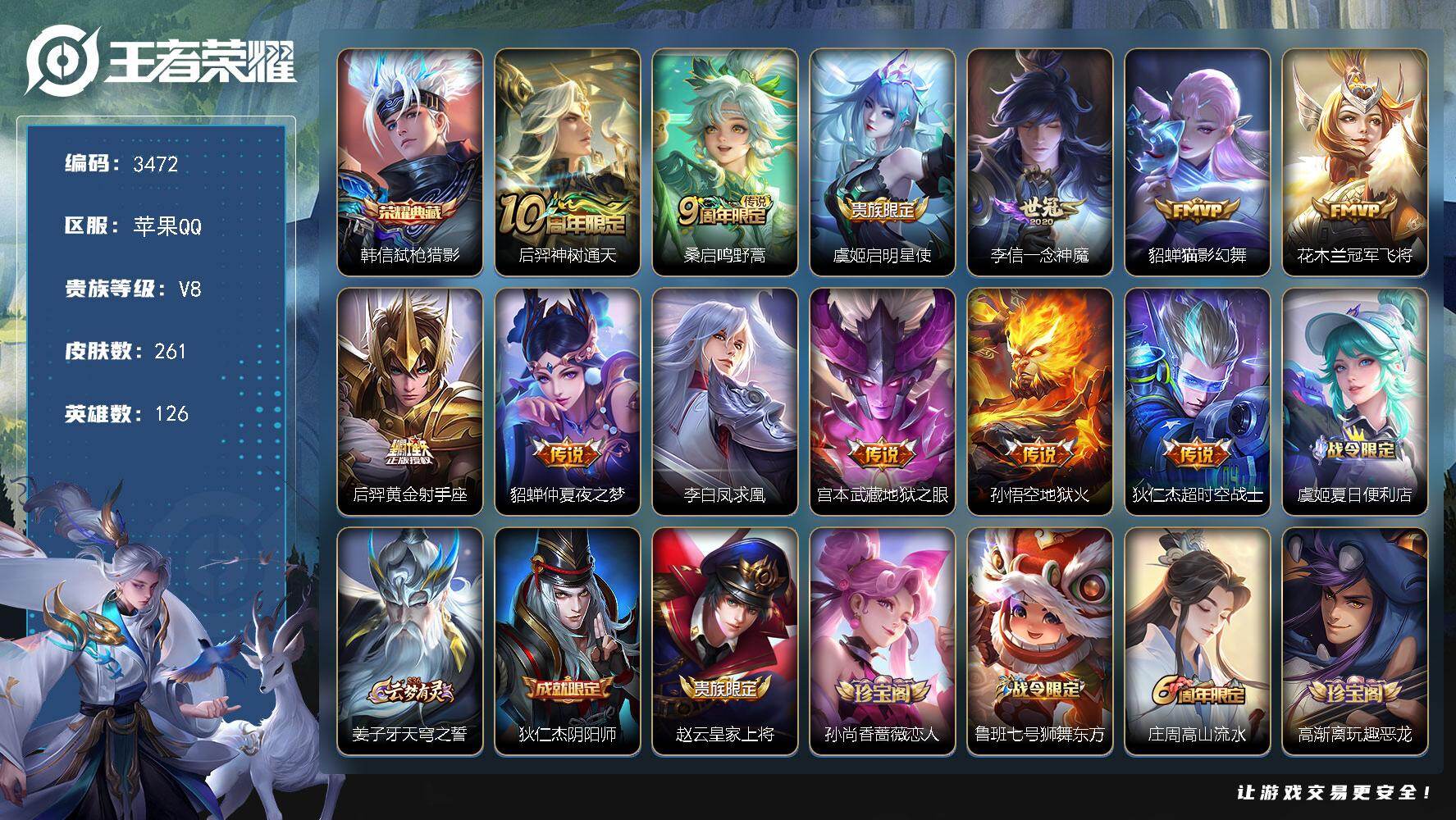 苹果Q-V8-最强王者段位-126英雄-261皮肤-1典藏皮肤-12传说-76