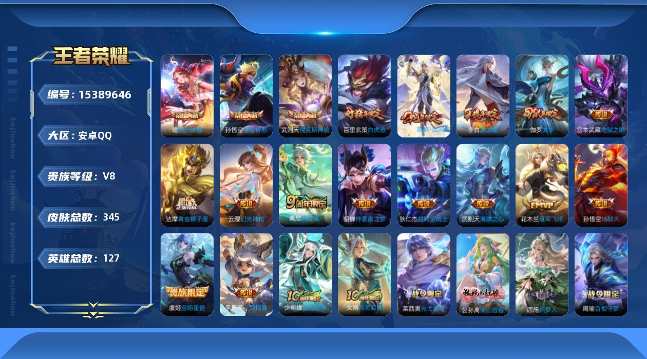 V8 1典藏 14传说 127英雄 223皮肤 可修改实名 【英雄全皮】敖隐全
