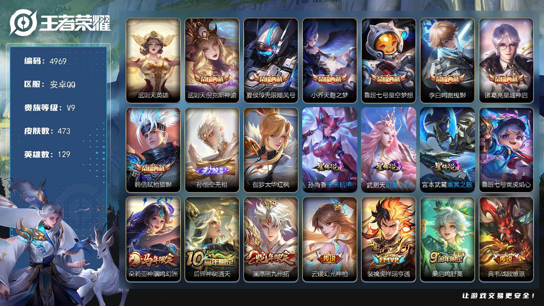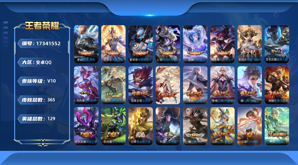 安卓Q-V9-最强王者段位-129英雄-473皮肤-7典藏皮肤-1典藏英雄-1