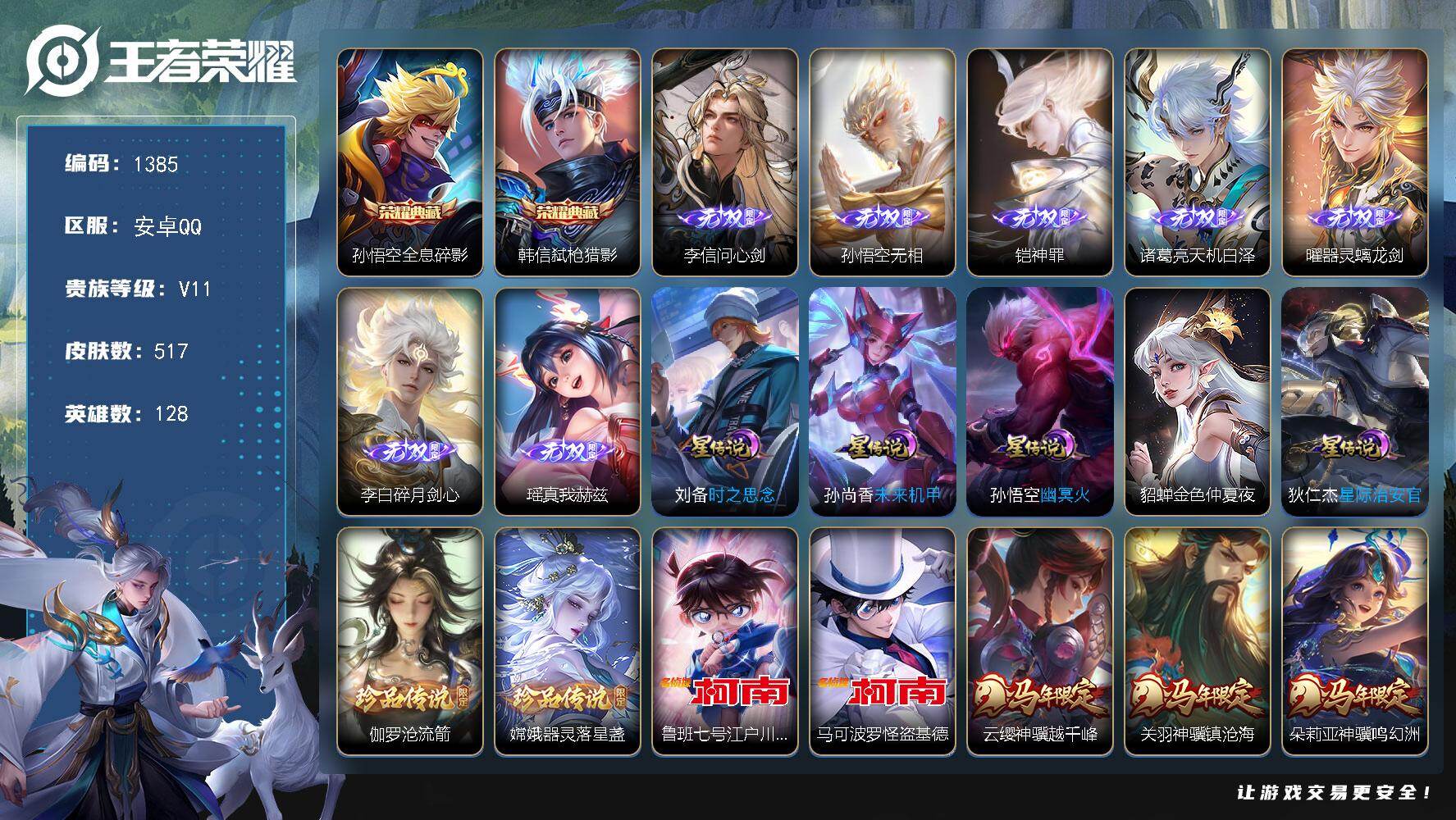 V11-最强王者段位-128英雄-517皮肤-2典藏皮肤-7无双-4珍品