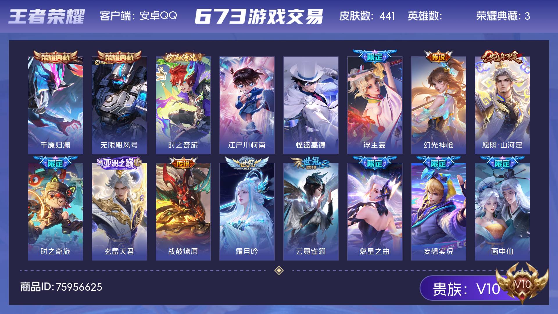 V10 皮肤441 至尊星耀 荣耀典藏3 珍品传说3 传说39 其他皮肤403