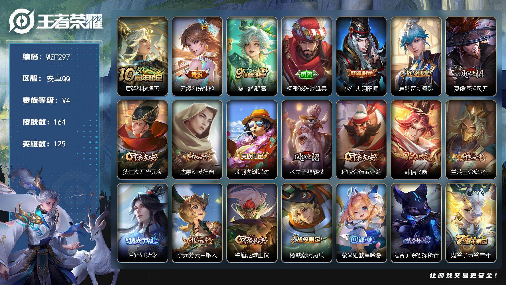 V4-尊贵铂金II段位-125英雄-164皮肤-3传说-32史诗