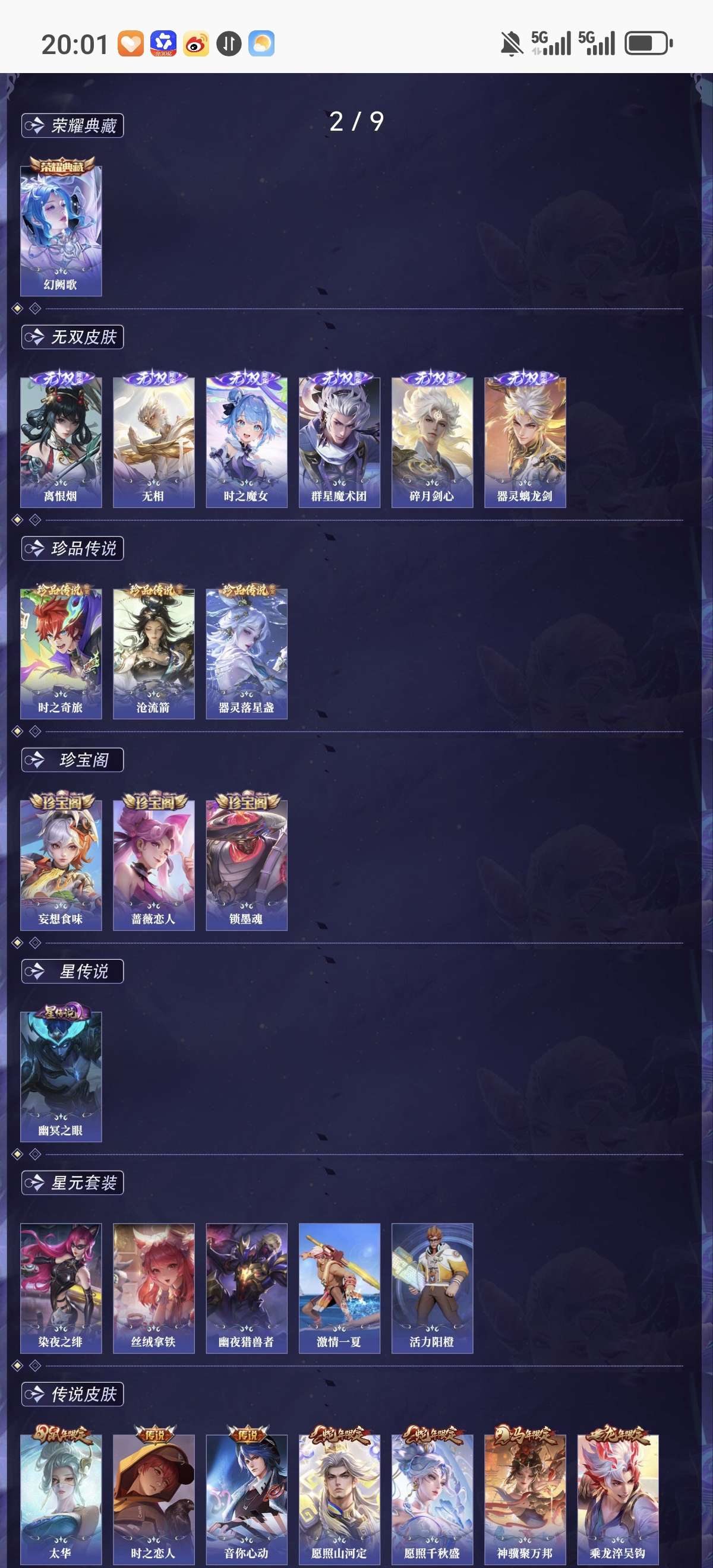 荣耀典藏1 无双6 珍品传说3 星元皮肤1 传说皮肤32