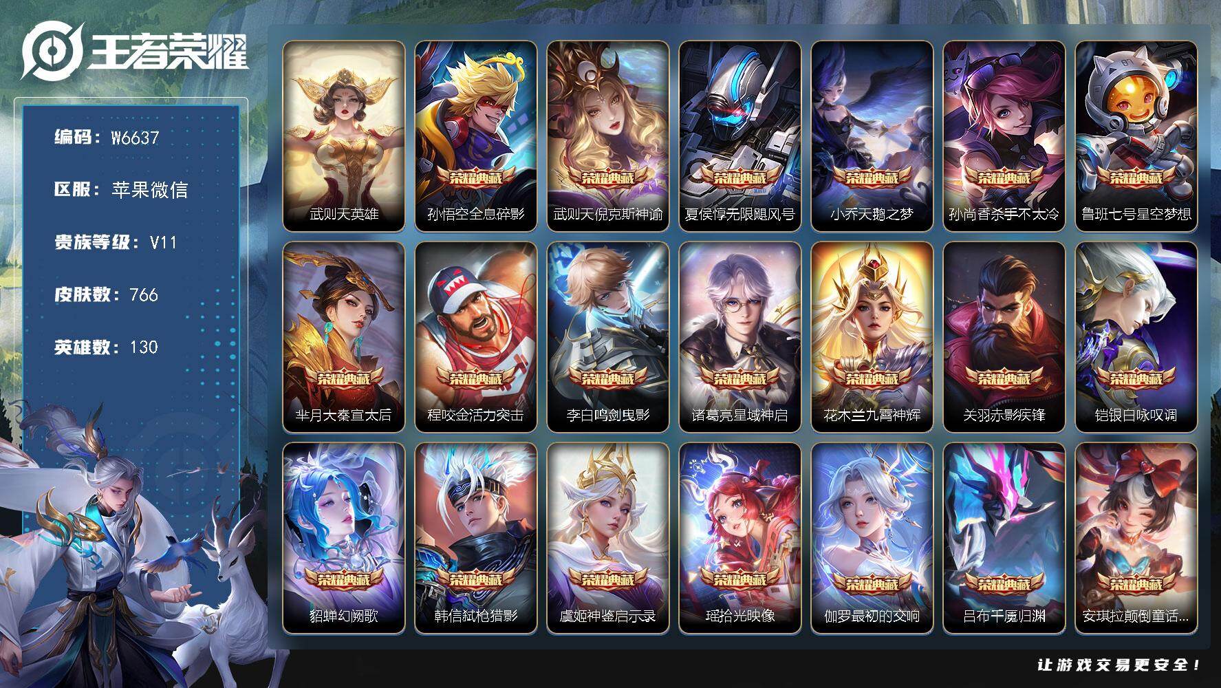 【W6637】无双贵10-苹果微信-可二次-贵10-130英雄-766皮肤-(