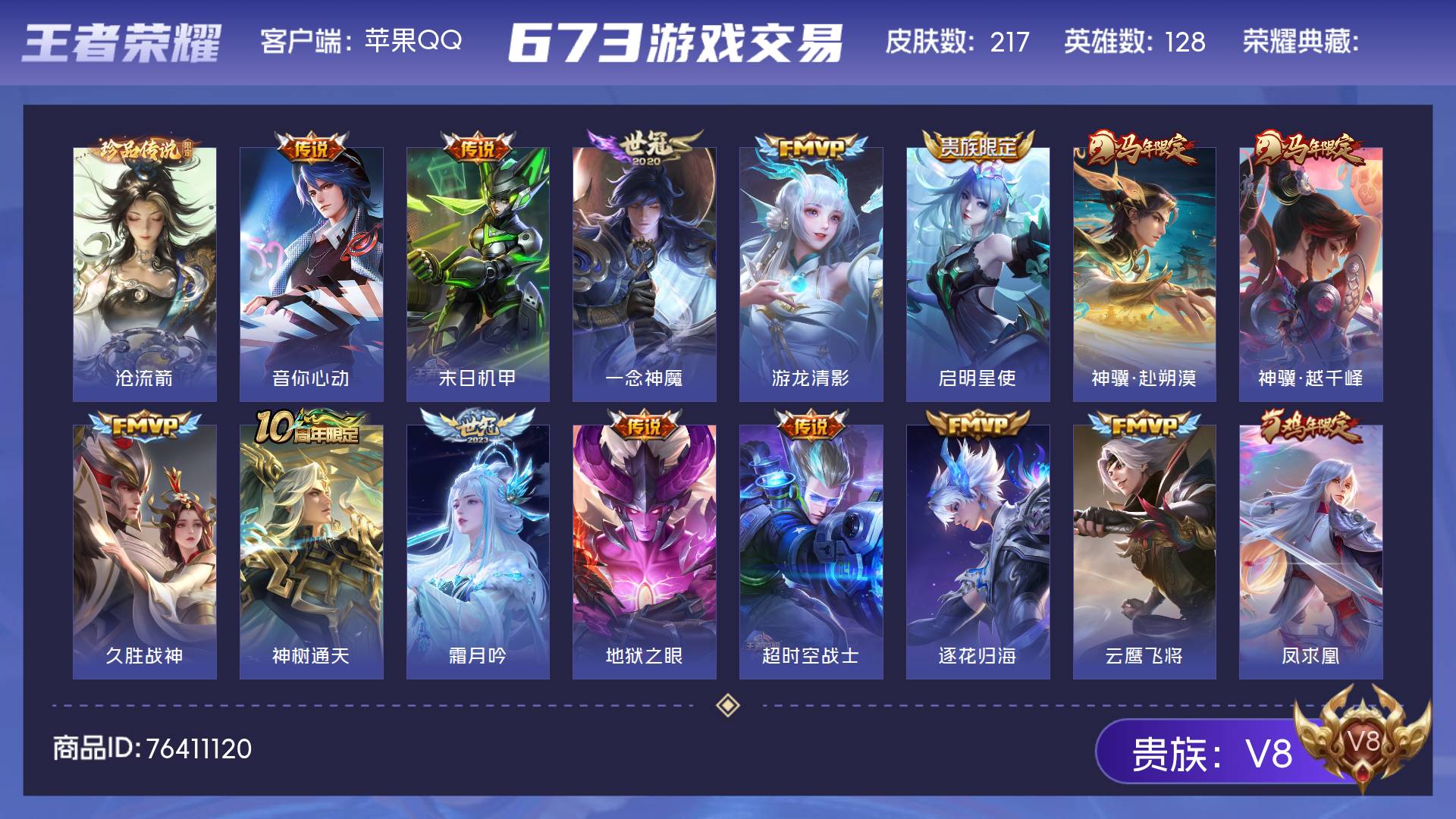 V8 皮肤217 英雄128 至尊星耀 珍品传说1 传说25