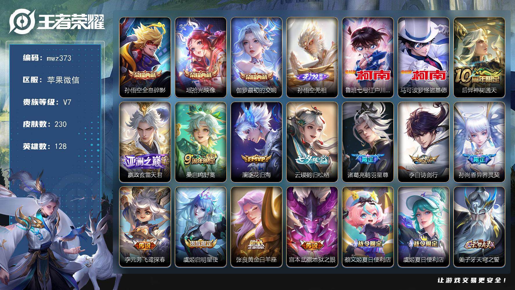 【mwz373】苹果WX-V7-永恒钻石III段位-128英雄-230皮肤-3