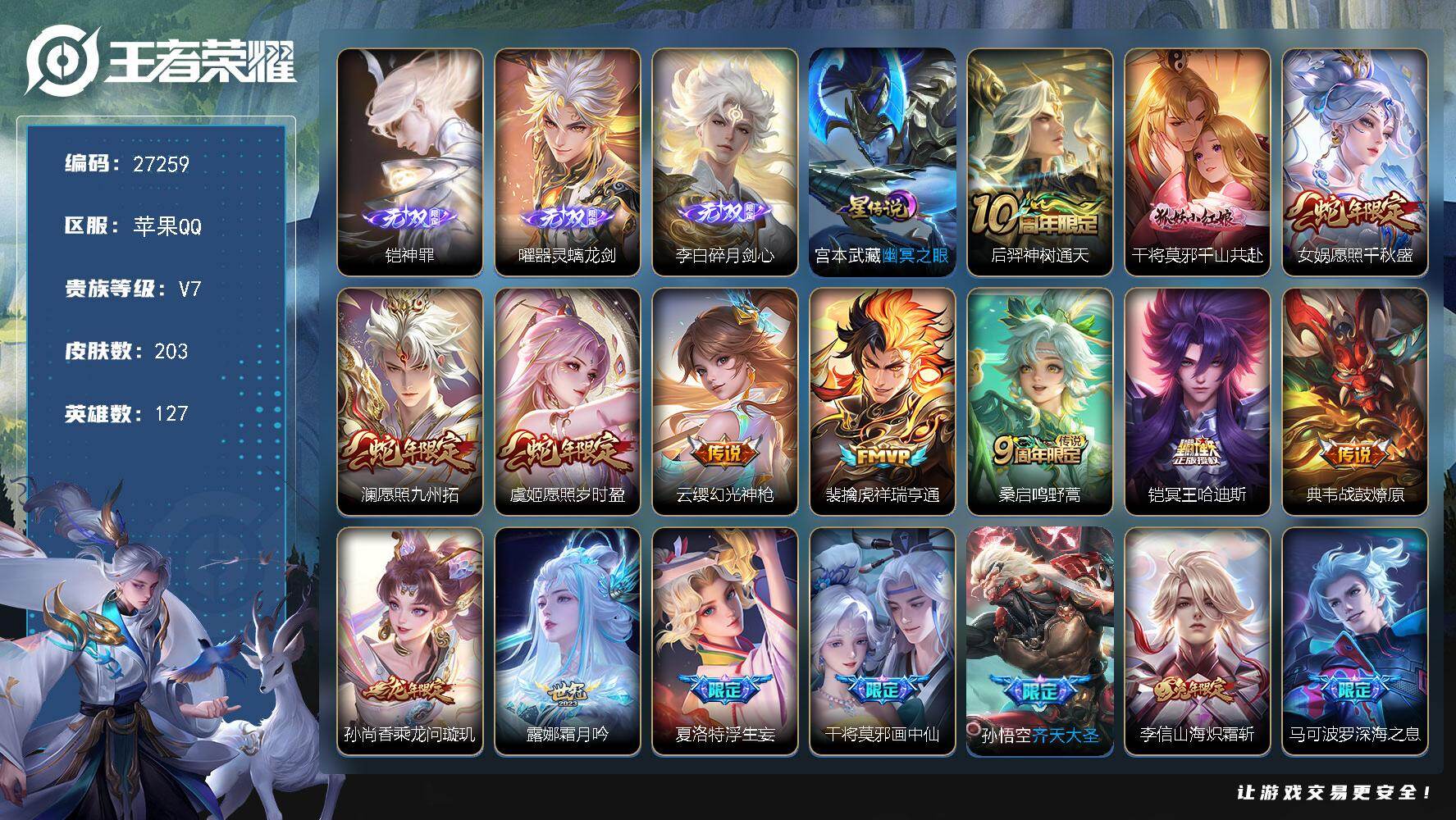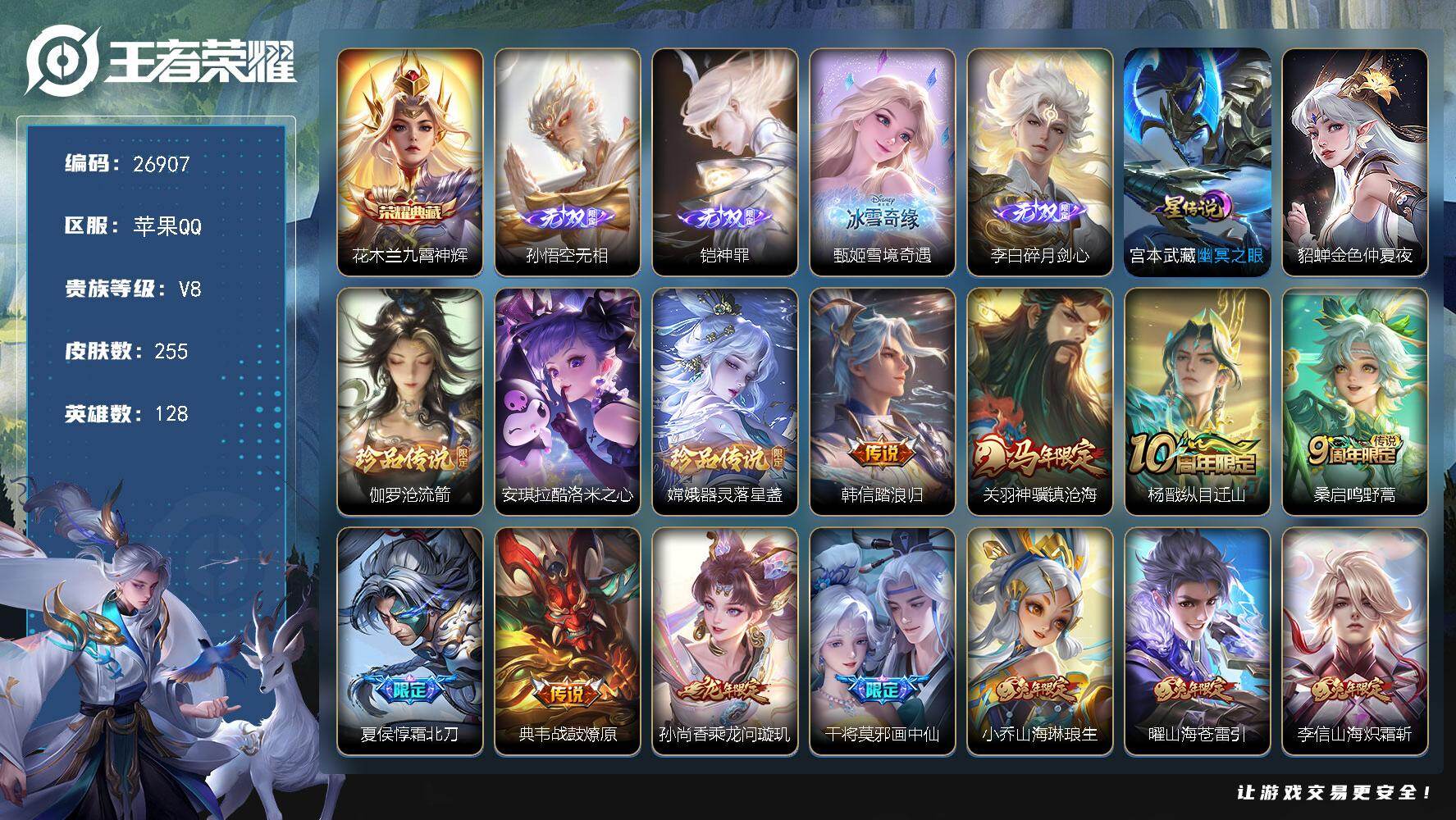 V8-最强王者段位-128英雄-255皮肤-1典藏皮肤-4无双-3珍品传说-25传说-67史诗