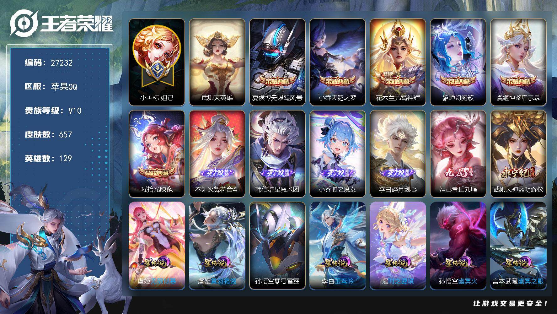 精品v10推荐·41w贵族积分·小国妲己·2金标·妲己大乔马可全皮