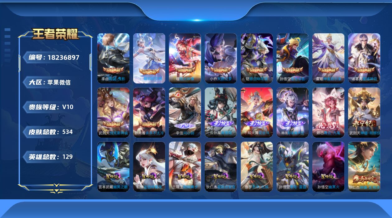 苹果Q-V9-最强王者段位-129英雄-366皮肤-3典藏皮肤-1典藏英雄-2