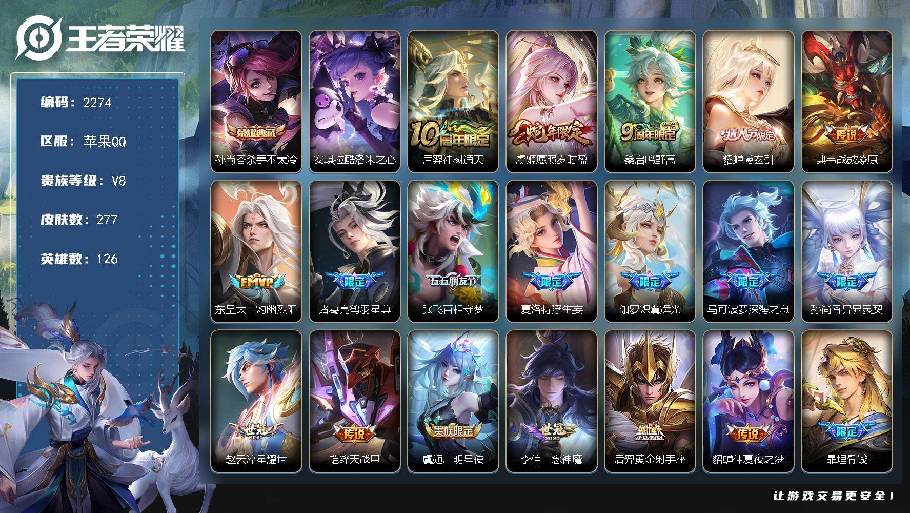 苹果WX-V8-最强王者段位-127英雄-220皮肤-1典藏皮肤-1无双-9传