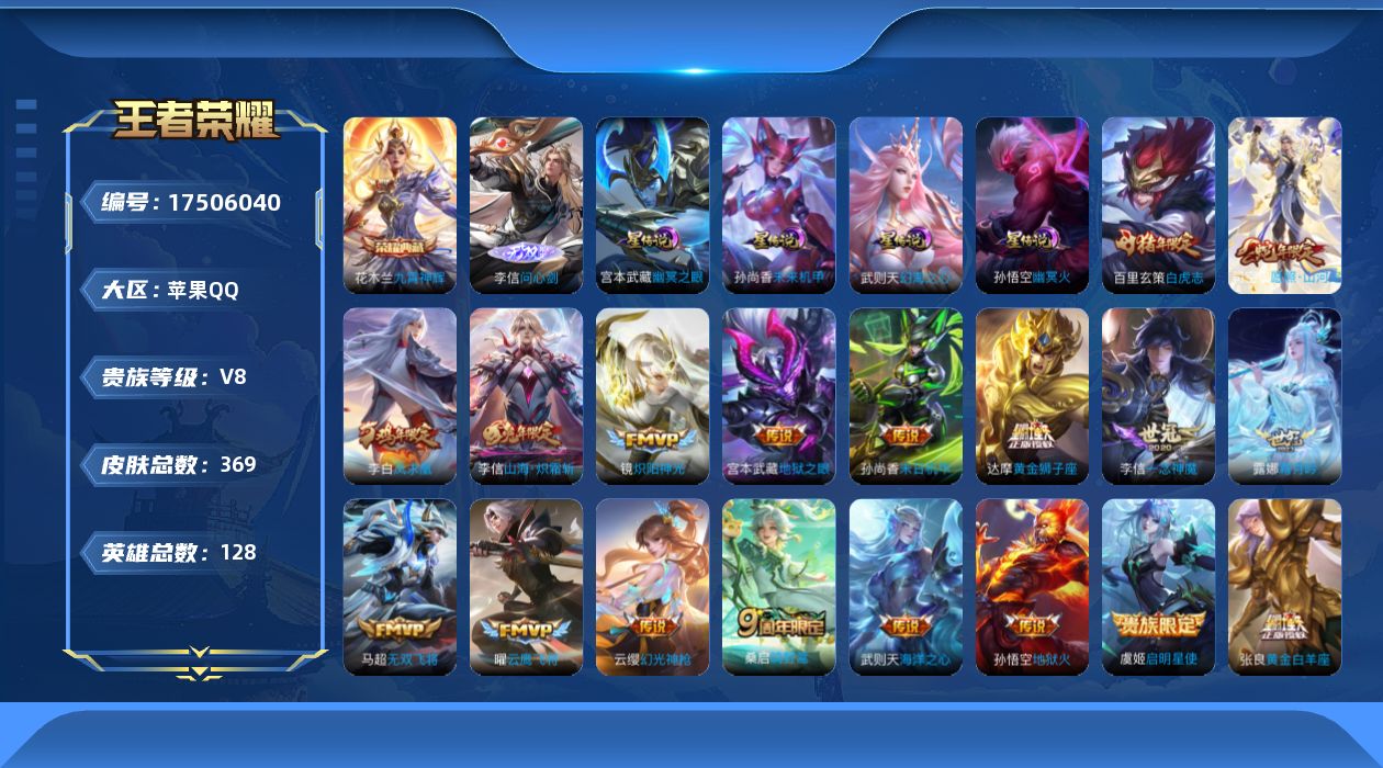 【16775688】苹果Q-V8-最强王者段位-128英雄-273皮肤-2典藏