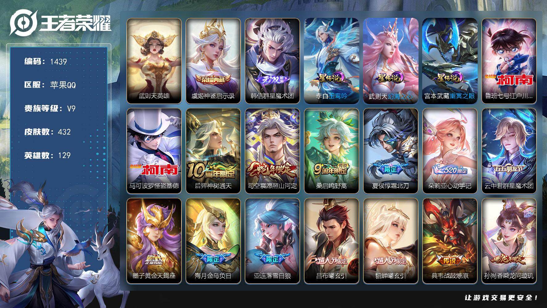 V9-最强王者段位-129英雄-432皮肤-1典藏皮肤-1典藏英雄